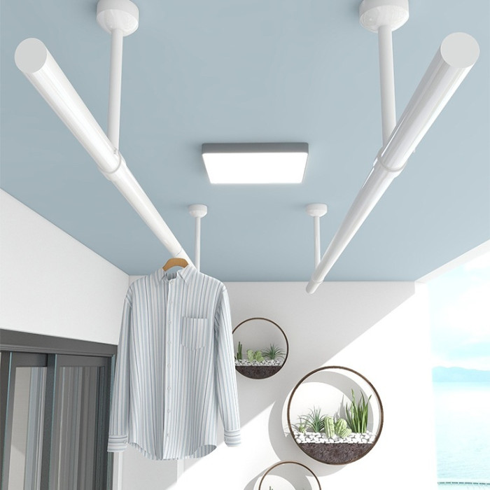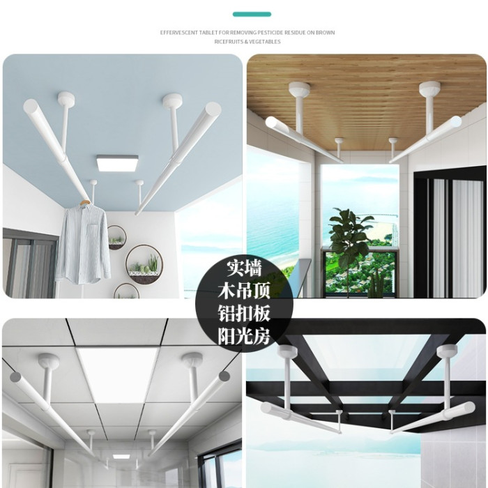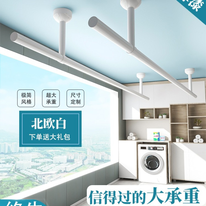 陽台不鏽鋼固定式晾衣桿白色頂裝曬衣架涼衣桿加厚掛衣桿單桿家用