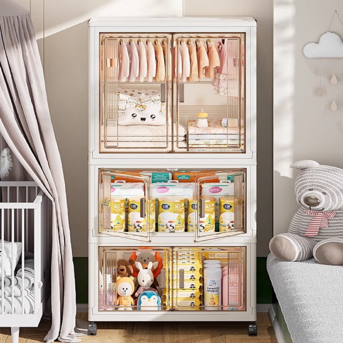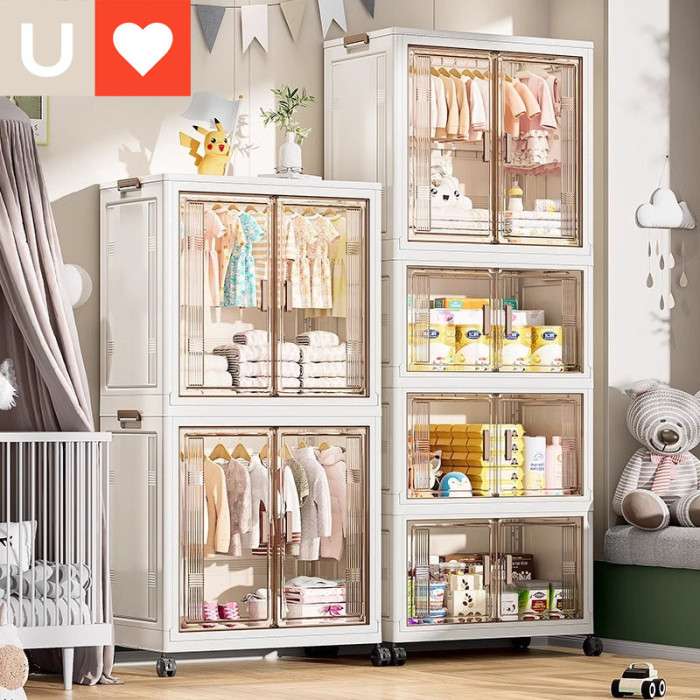 友耐嚴選家用折曡儲物櫃整理櫃寶寶嬰兒玩具透明整理櫃子寶寶衣櫃