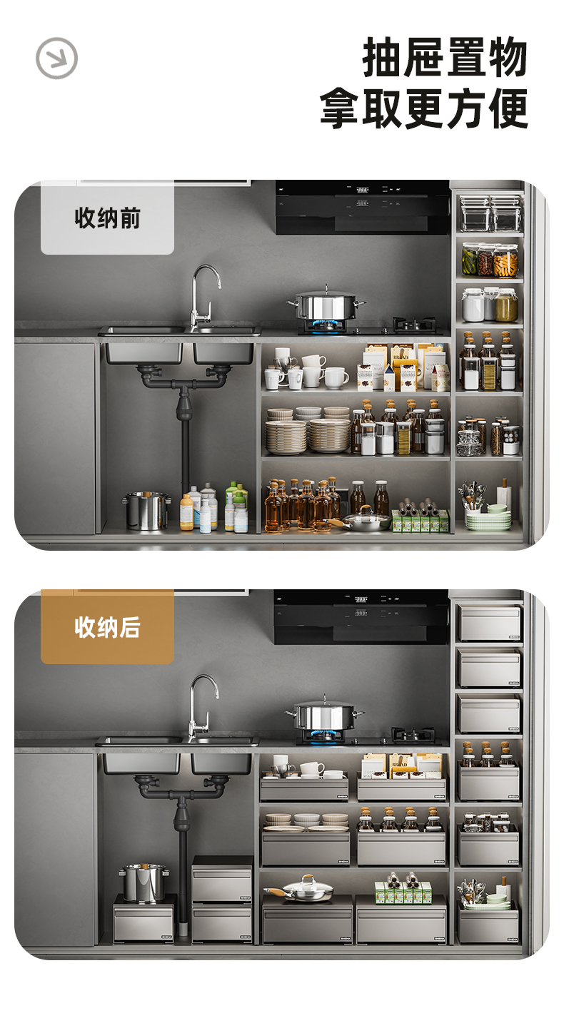 櫥櫃拉籃抽拉式廚房置物架櫃內抽屜下水槽深櫃碗碟盤抽屜式收納盒