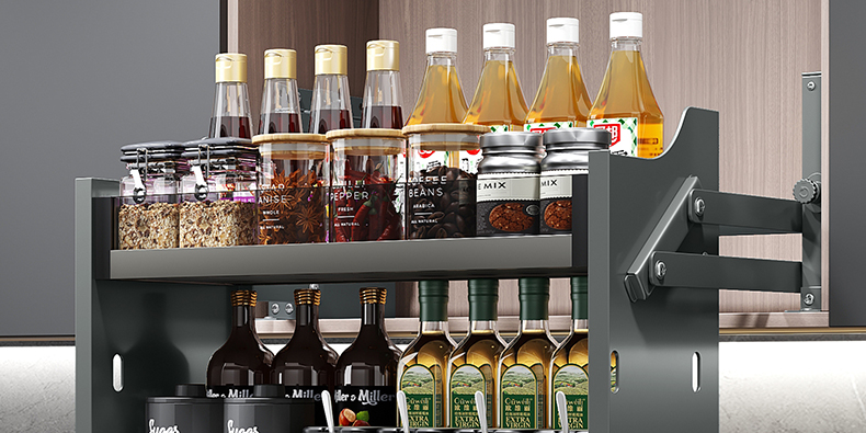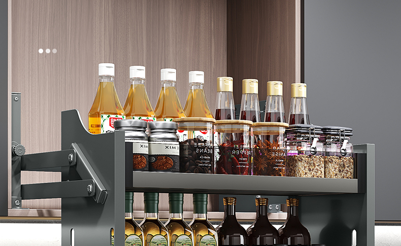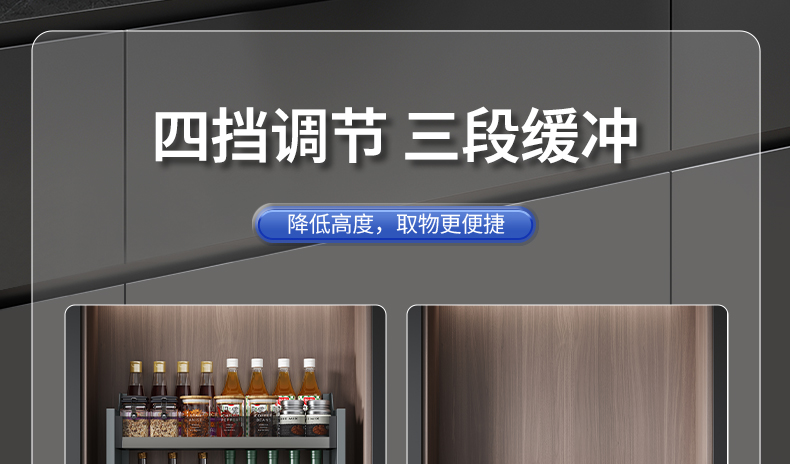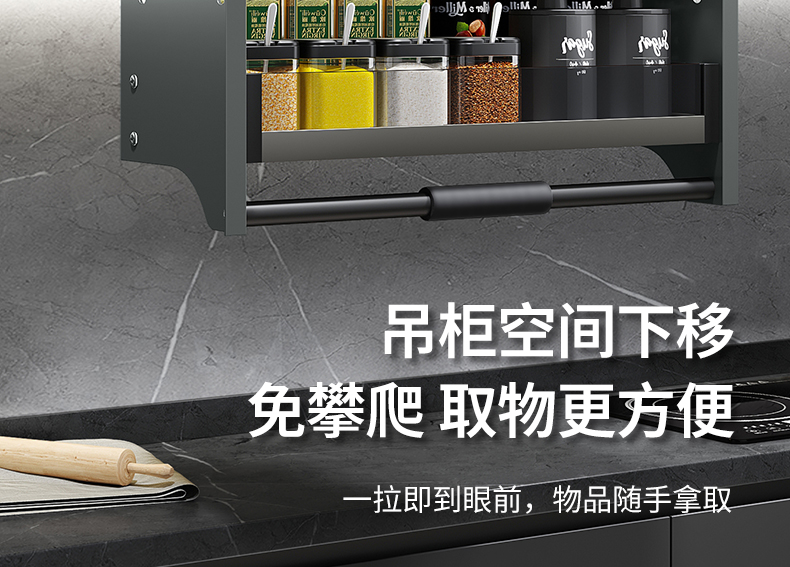 吊櫃升降拉籃廚房櫥櫃下拉緩沖阻尼開門式置物架調味料拉籃