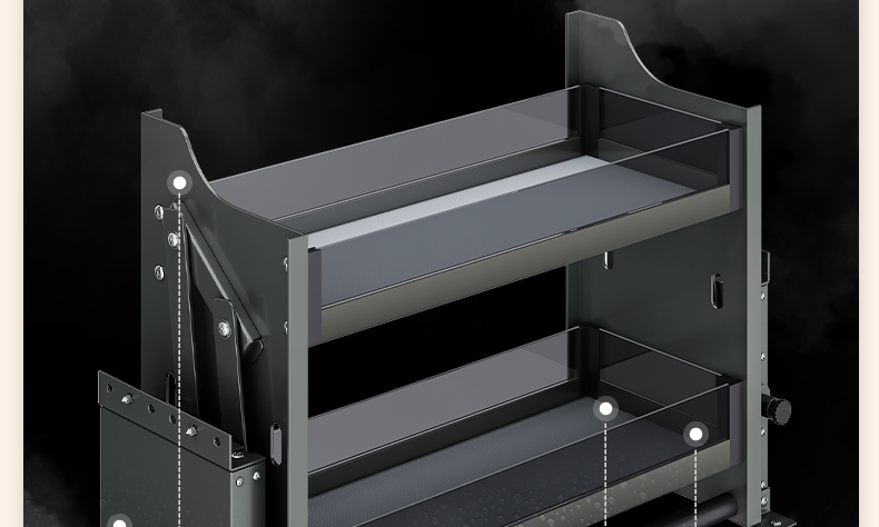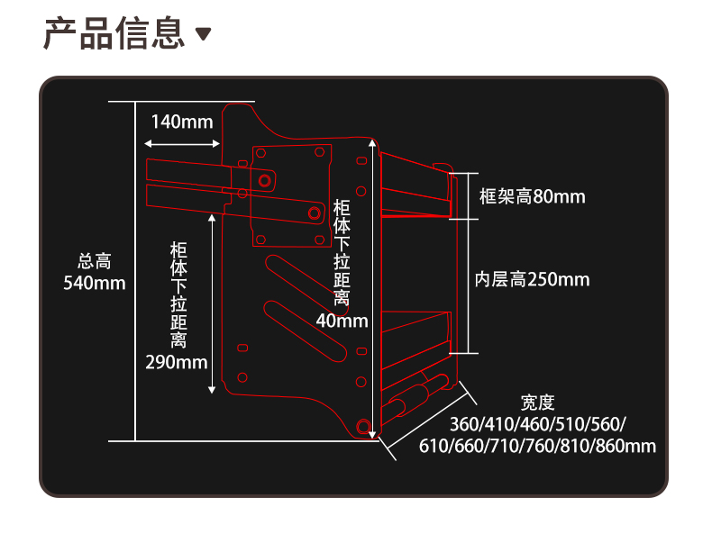| 規格 | 雙層-下拉式-【900櫃體】經典款-鋁合金星耀黑-可調寬度 -三段緩沖 |