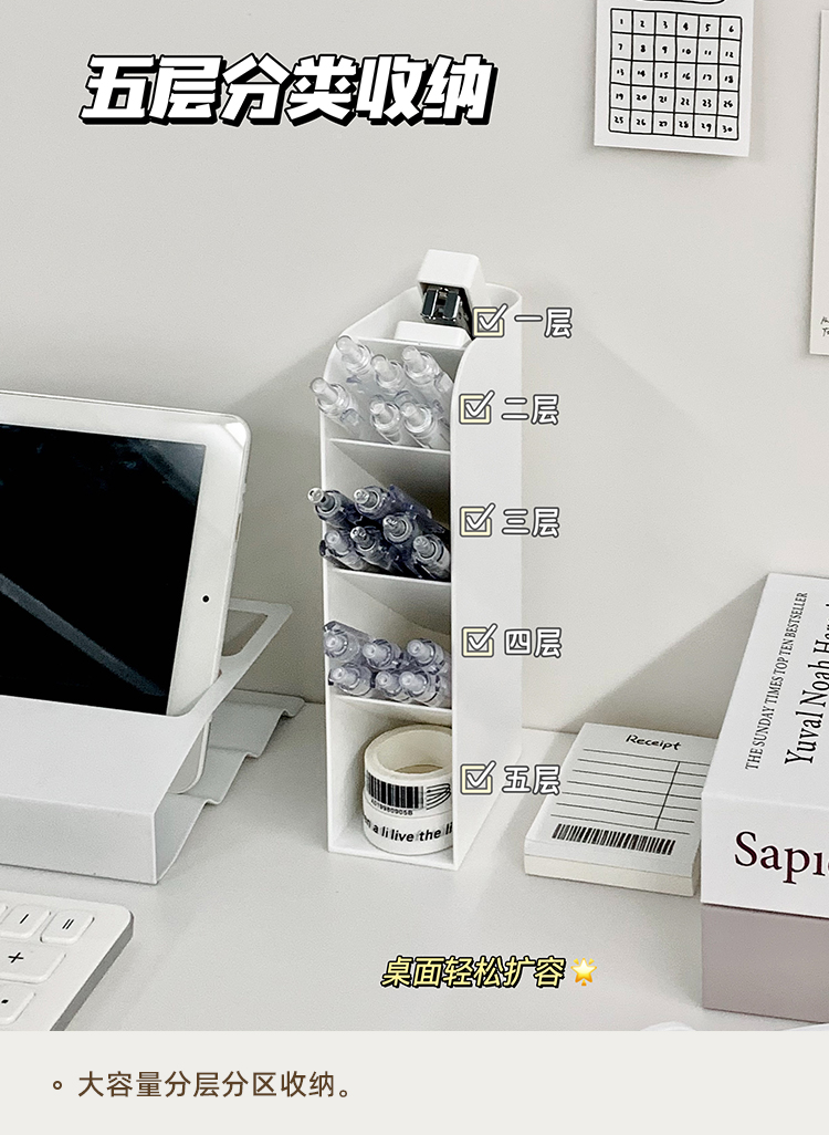 顔色 斜插式收納盒-嬭油高款*1+矮款*2