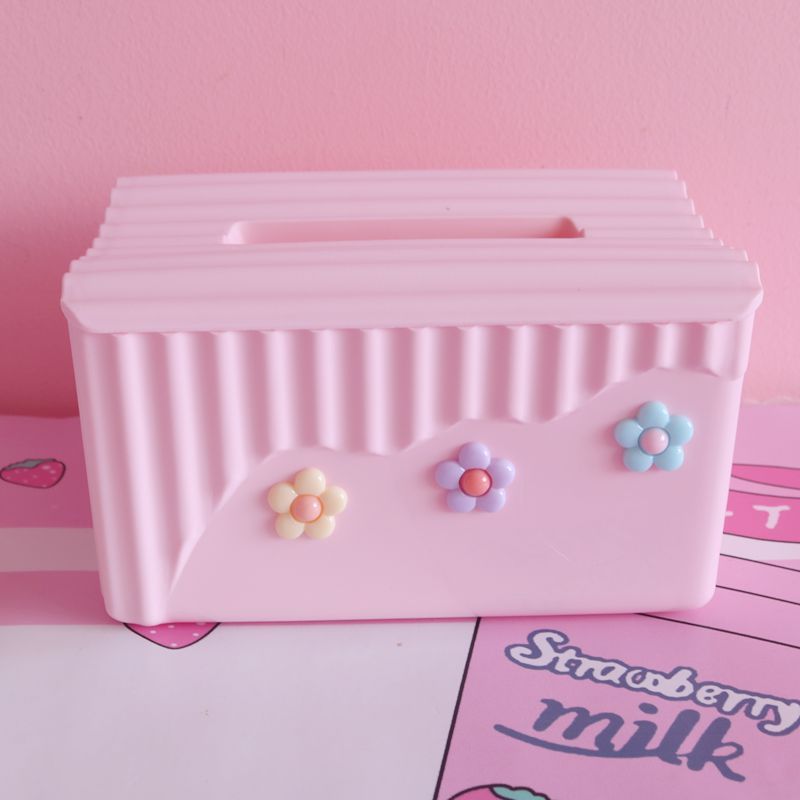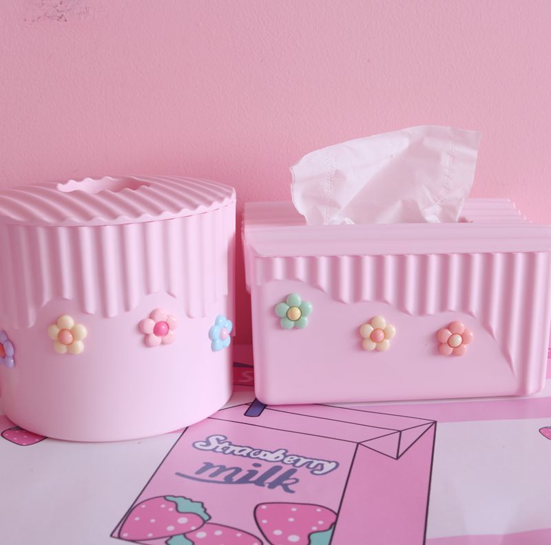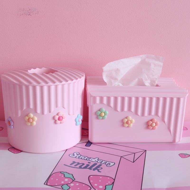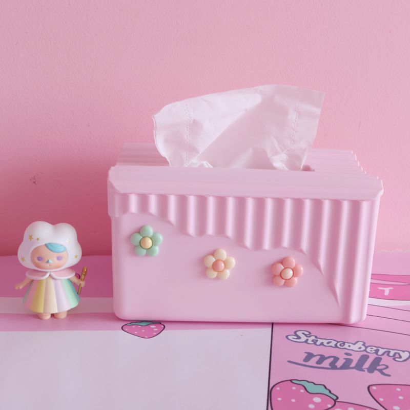 粉色少女心泫雅風小花朵紙巾盒臥室軟妹塑膠方形卷紙盒車用抽紙盒