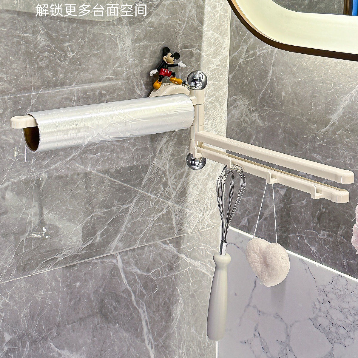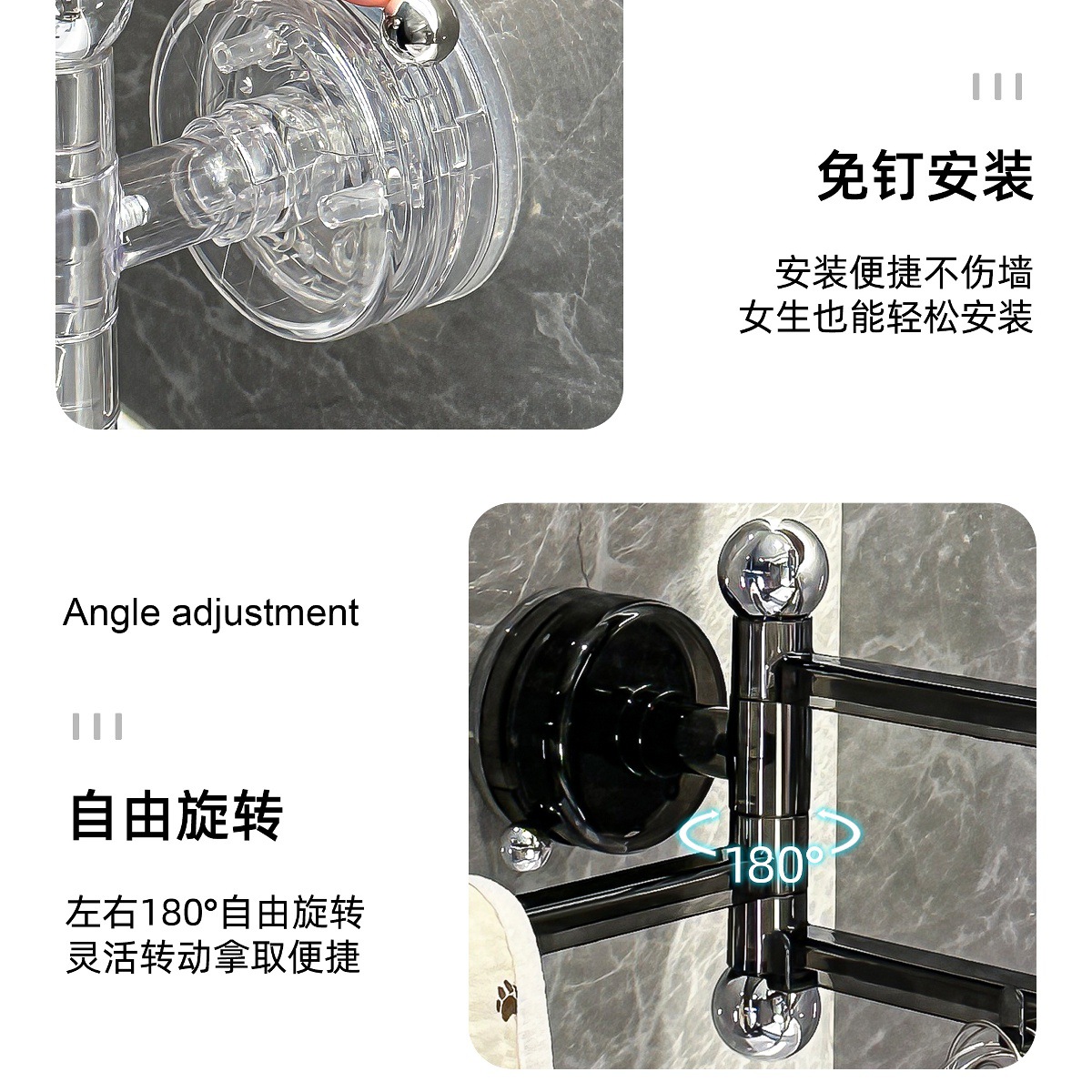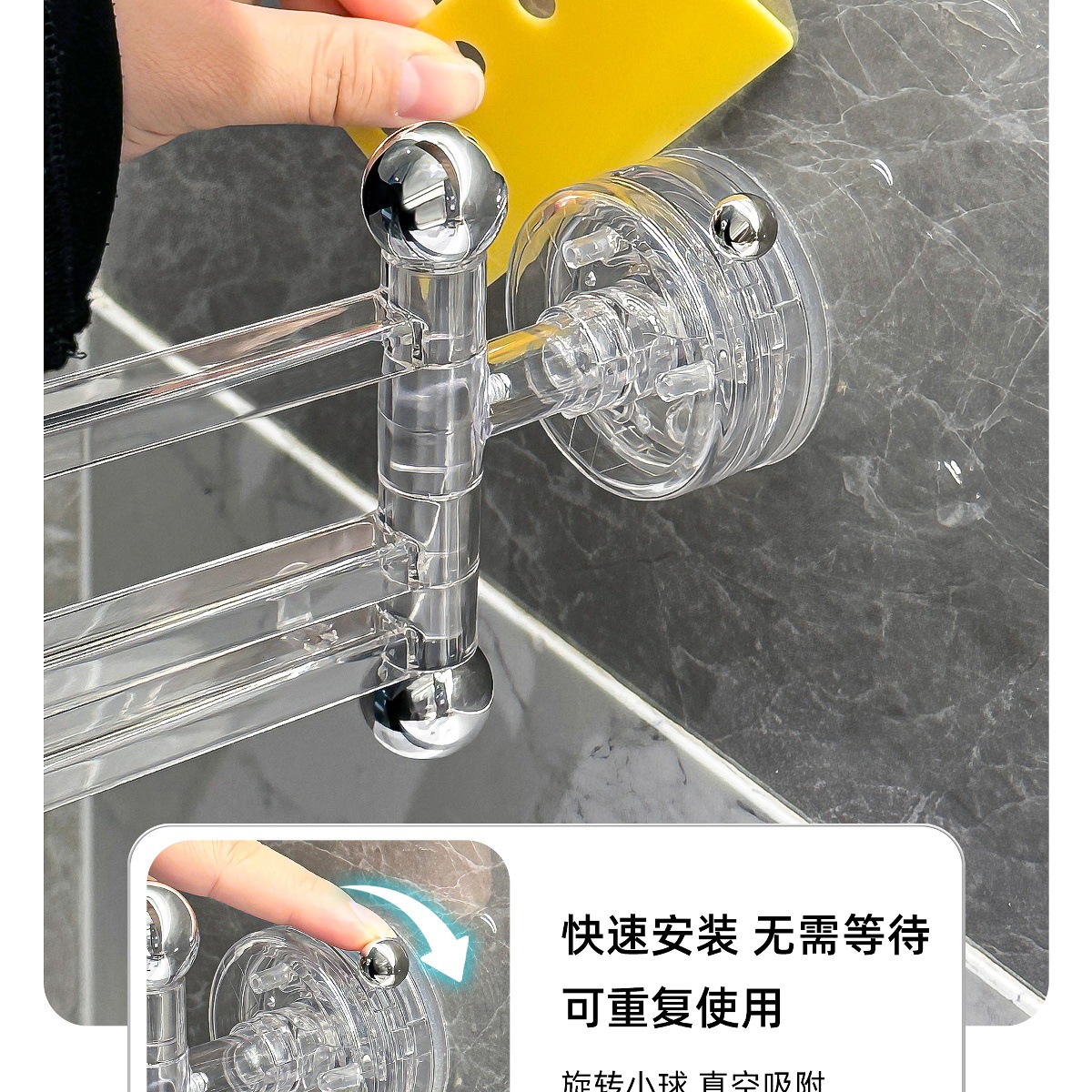 旋轉抹布架免打孔毛巾架多桿壁掛瀝水架廚房多功能置物架吸盤掛桿