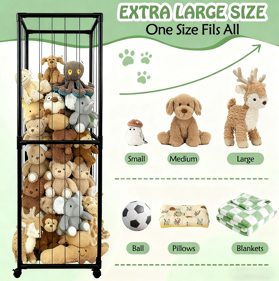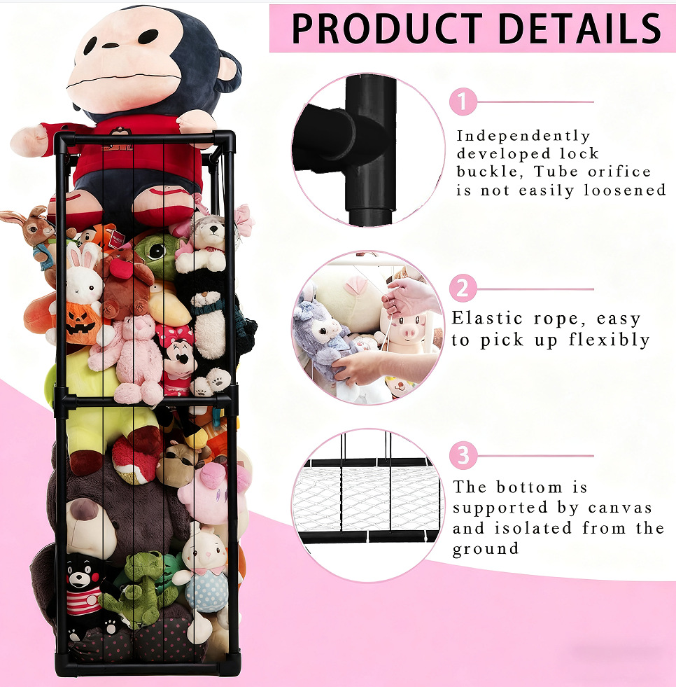 填充動物儲物架填充收納創意毛絨收納帶底部網填充儲物籠用於玩偶