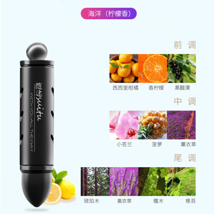 【産品名稱】:汽車香薰(含1片香棒海洋味)