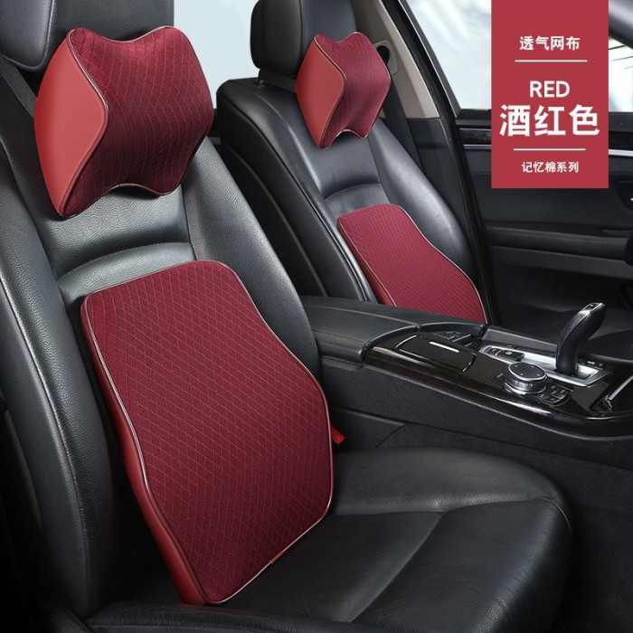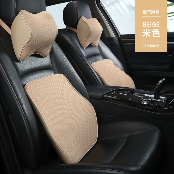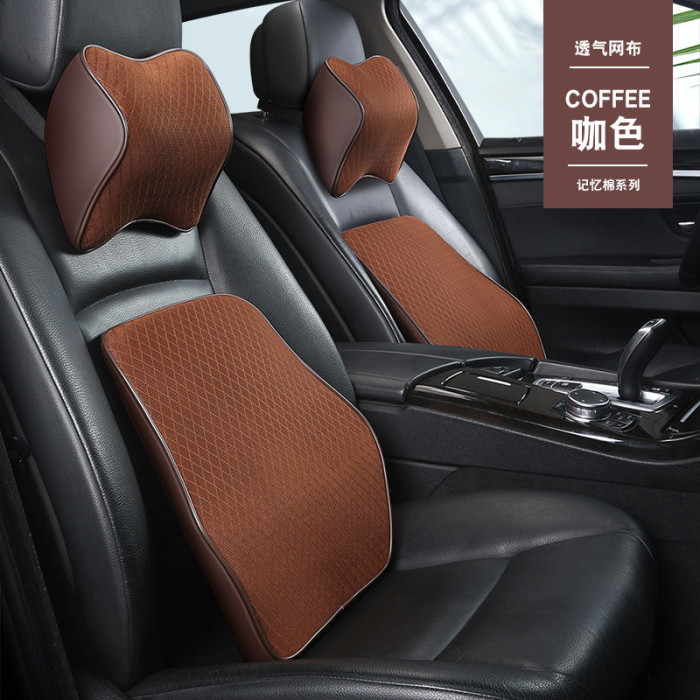 伊文思汽車頭枕腰靠網布透氣車用記憶枕護頸枕頸枕