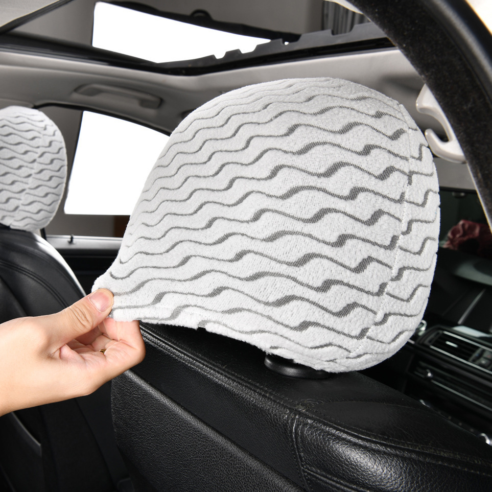汽車彈力布藝頭枕套罩通用簡易防塵座椅套全包透氣薄款車座套