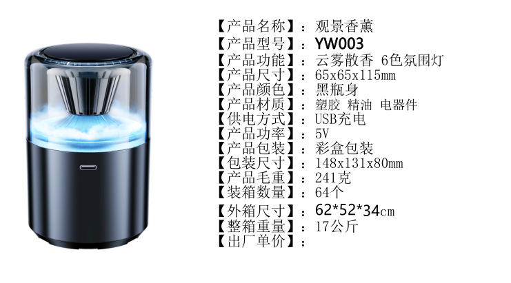 顔色 沁香雲霧YW003【經典海洋】+隨車啓停+6色氛圍燈