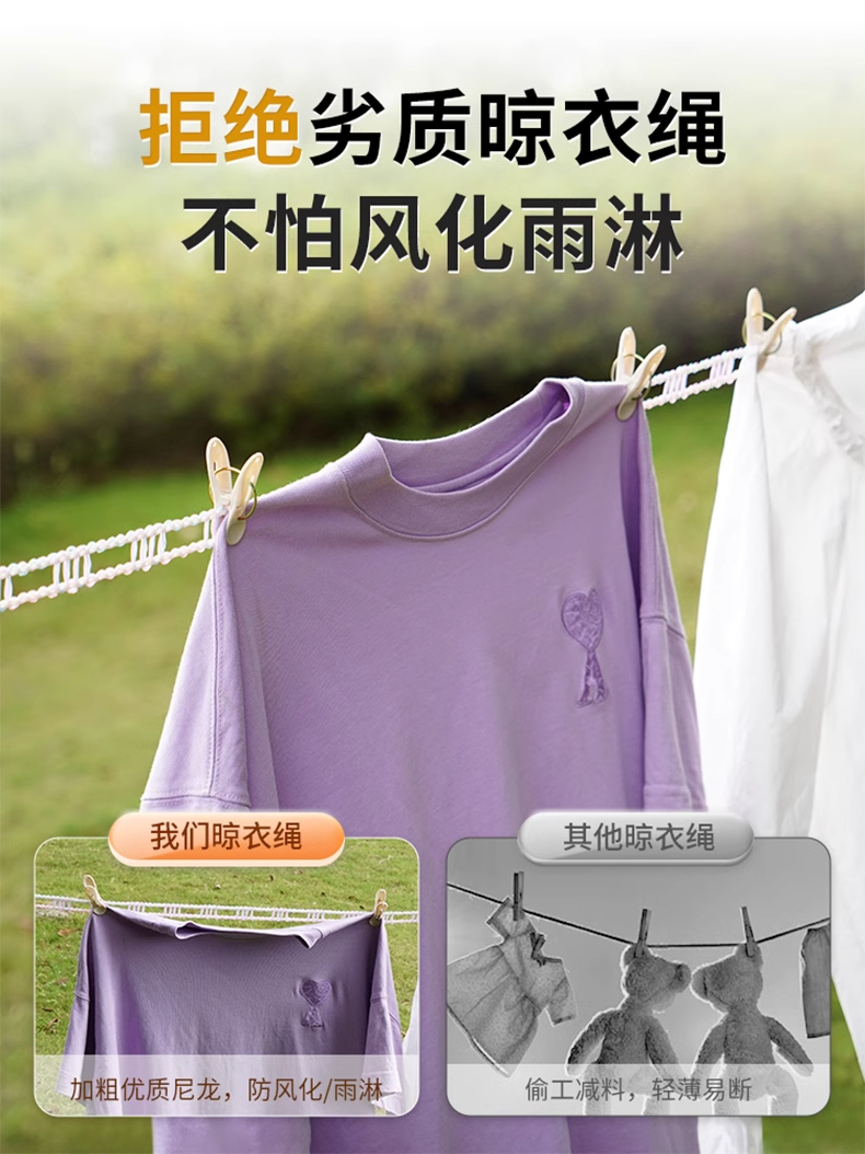 蘇甯加厚晾衣繩戶外曬被子防風防滑宿舍旅行可攜式免打孔掛繩824
