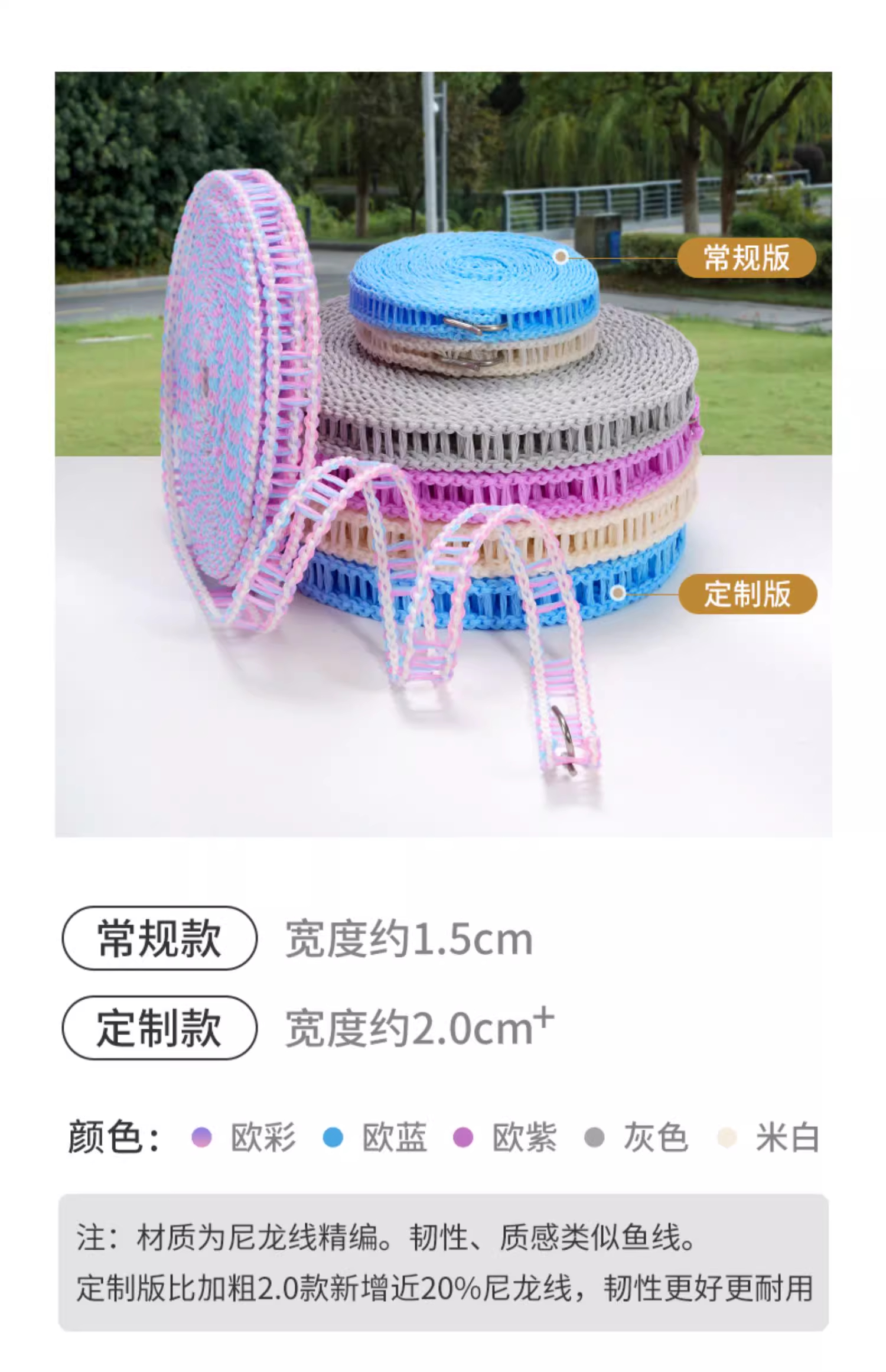 | 顔色 | 【升級加厚款大風也不怕】10m雅白款/繩寬2cm適合樓頂風大使用 |