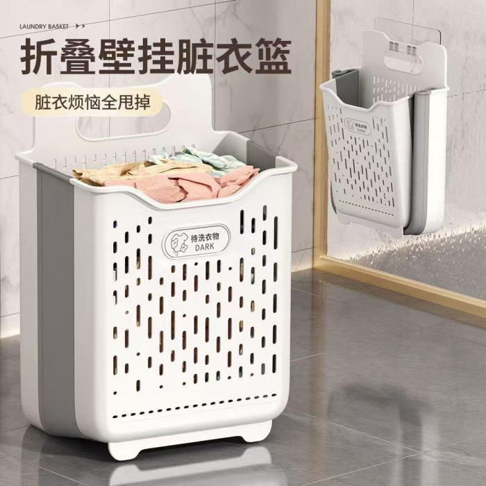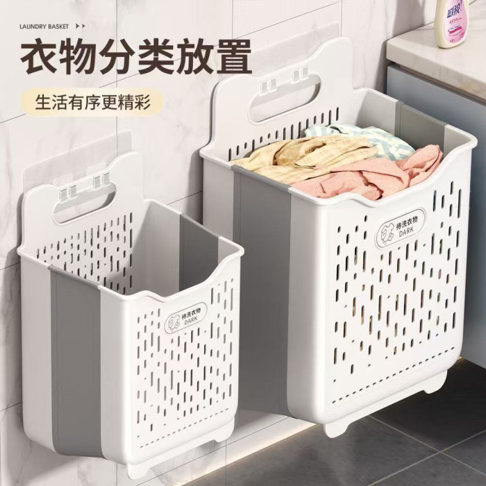 髒衣服收納筐衛生間浴室放衣服神器家用可折曡壁掛洗衣籃髒衣簍桶