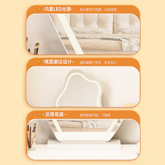 雲朵化妝鏡桌上型桌面帶燈新款輕奢LED智能女生主臥梳妝台鏡子