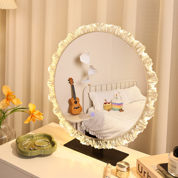 輕奢化妝鏡亞克力led帶燈高級梳妝鏡異形鏡梳妝桌上型桌面發光鏡子