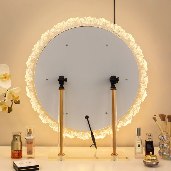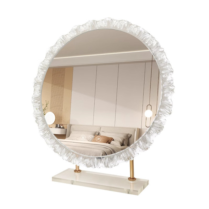 化妝鏡帶燈led異形桌上型桌面梳妝台鏡子旋轉梳妝鏡智能觸控美妝鏡
