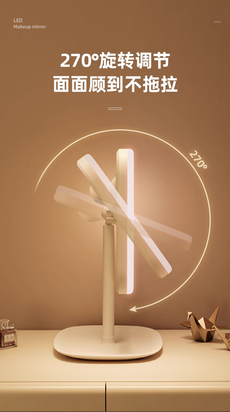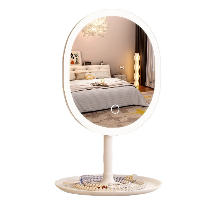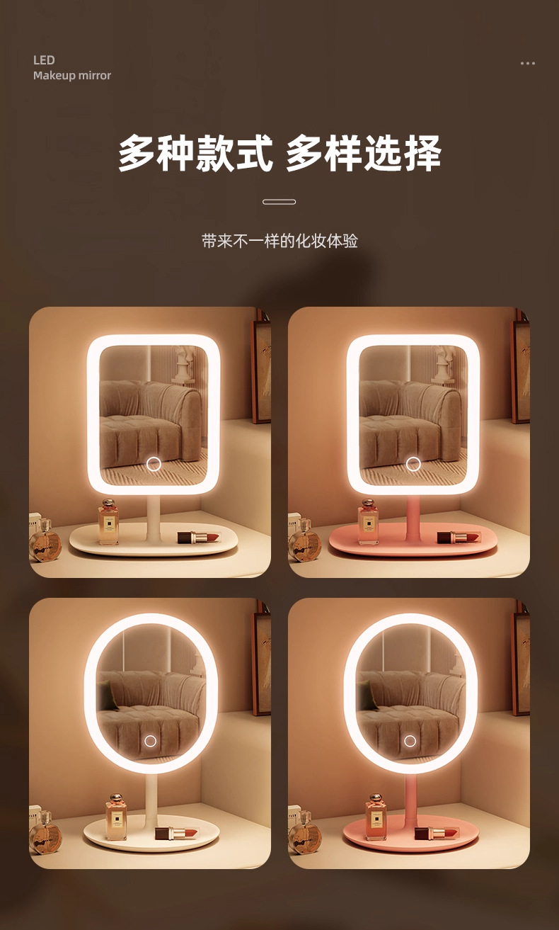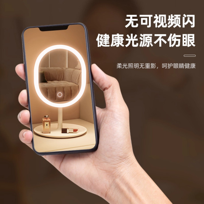 學生宿舍桌面梳妝鏡帶燈家用梳妝台鏡子led鏡子辦公室桌上型化妝鏡