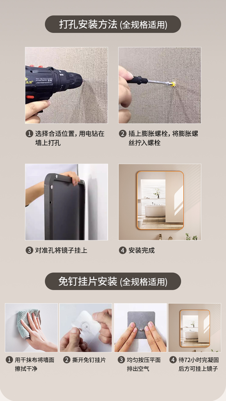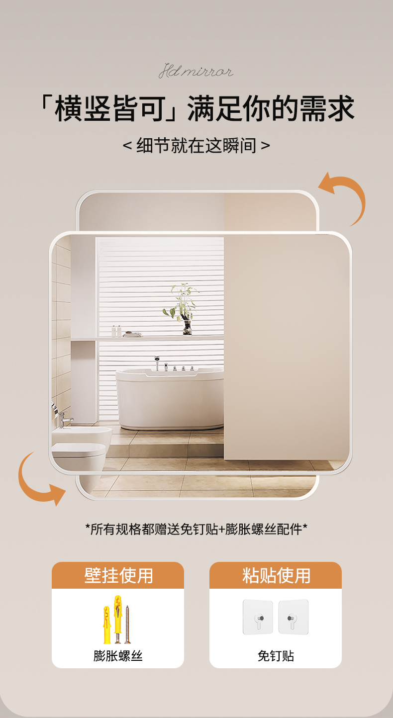 鏡子貼牆自粘洗手台浴室鏡壁掛式衛生間厠所免打孔梳妝高清化妝鏡
