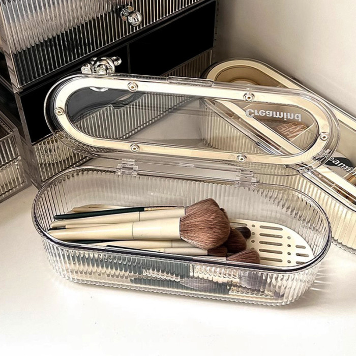 化妝刷收納盒防塵高級感粉撲美妝蛋晾曬瀝水架散粉腮紅眉筆置物架