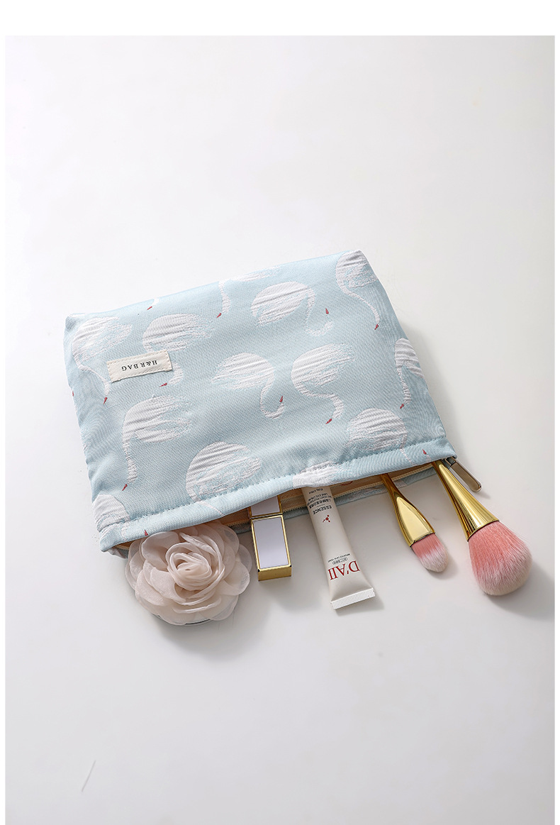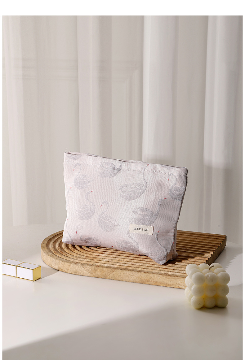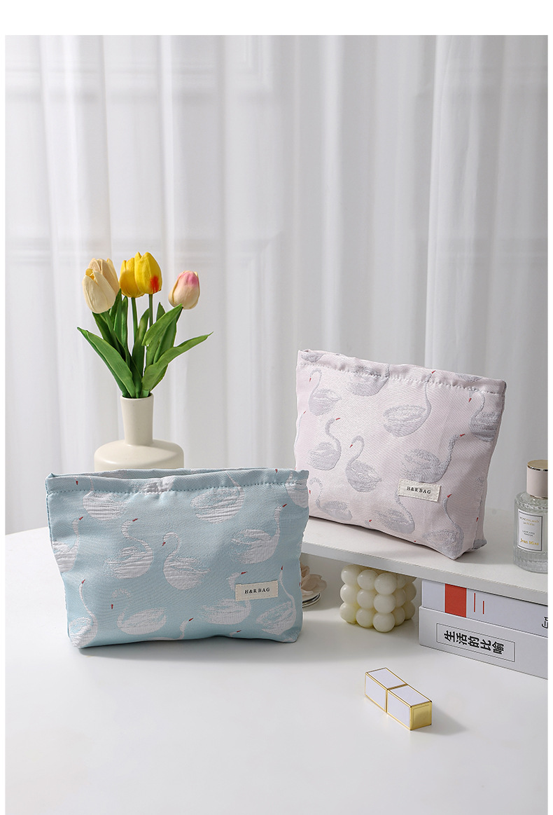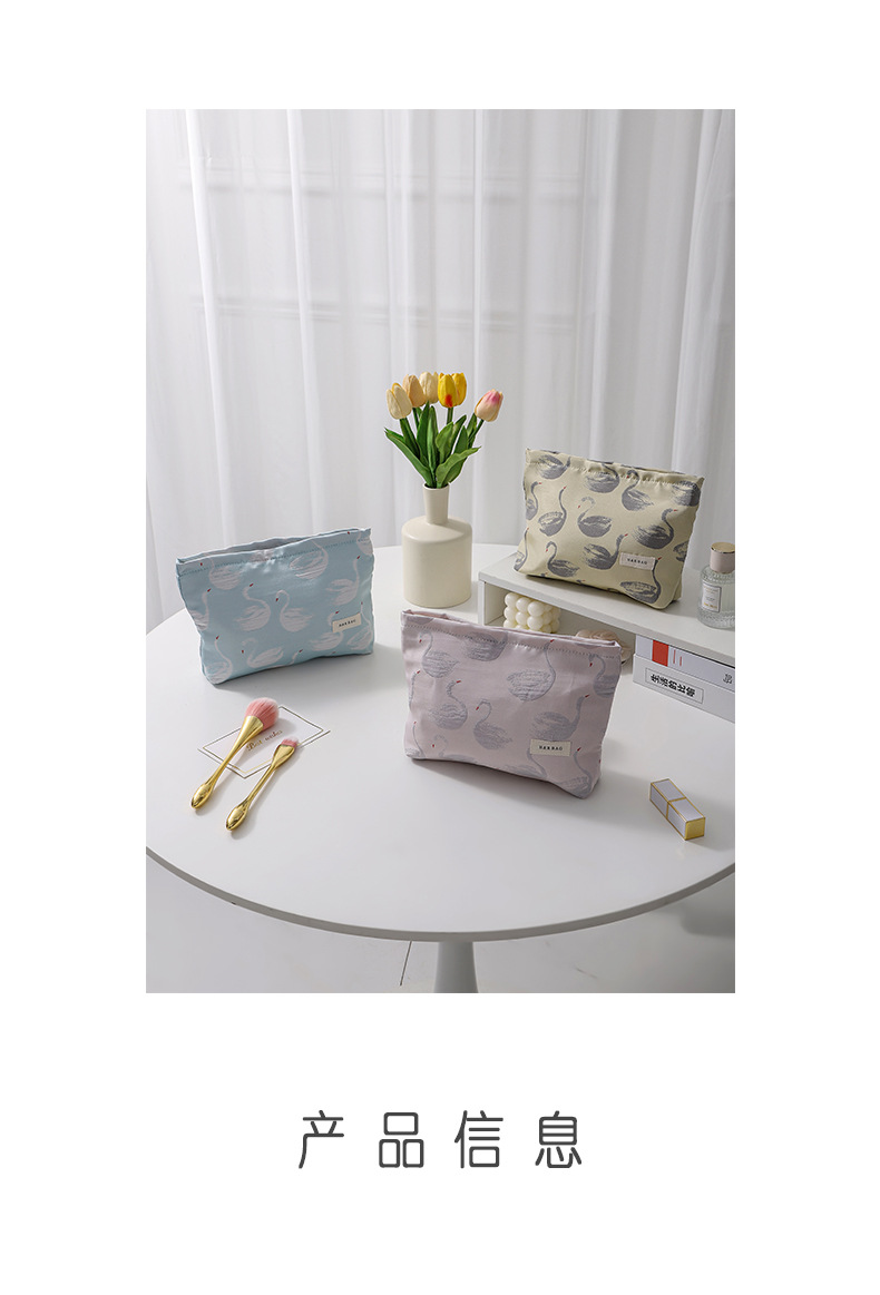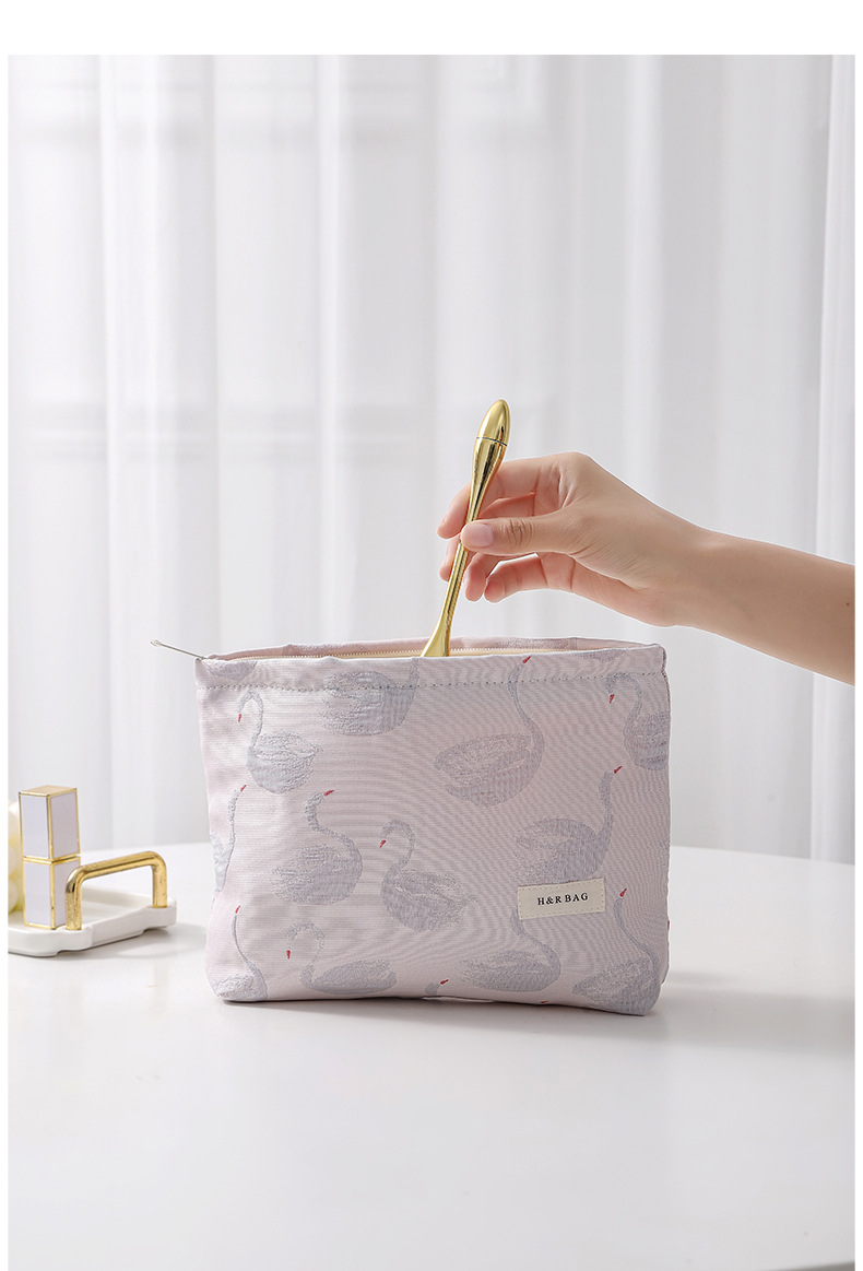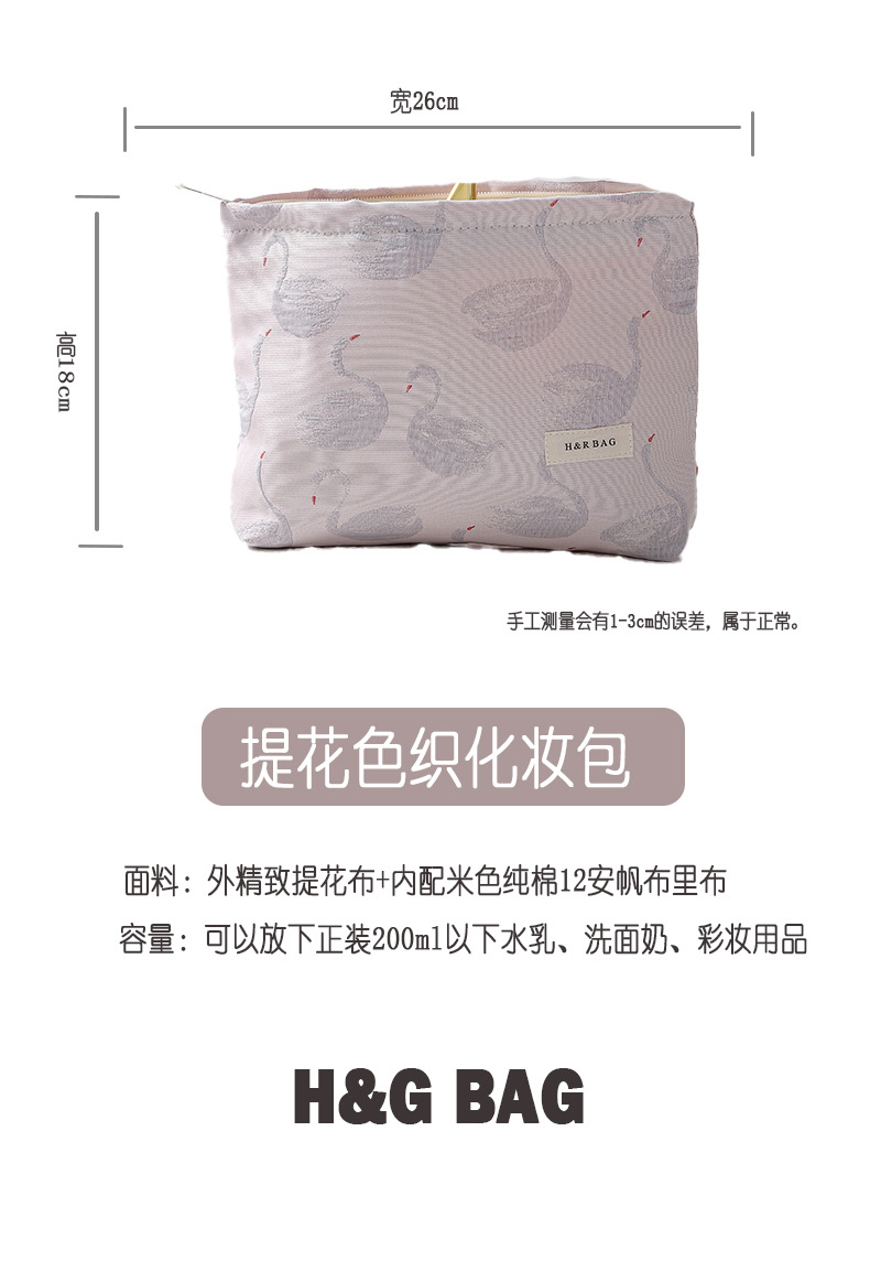 新款小清新天鵞提花撞色化妝袋旅行化妝收納包手拿包內膽包帆布包