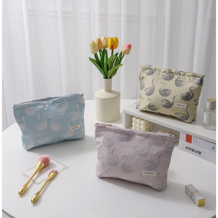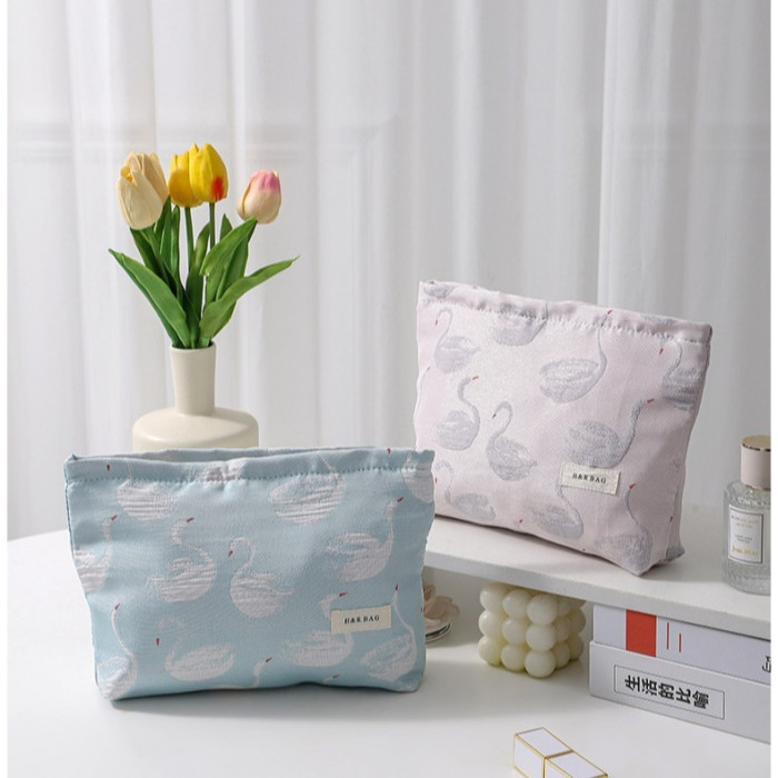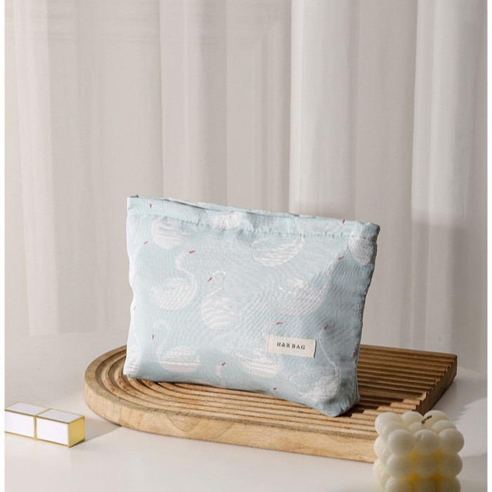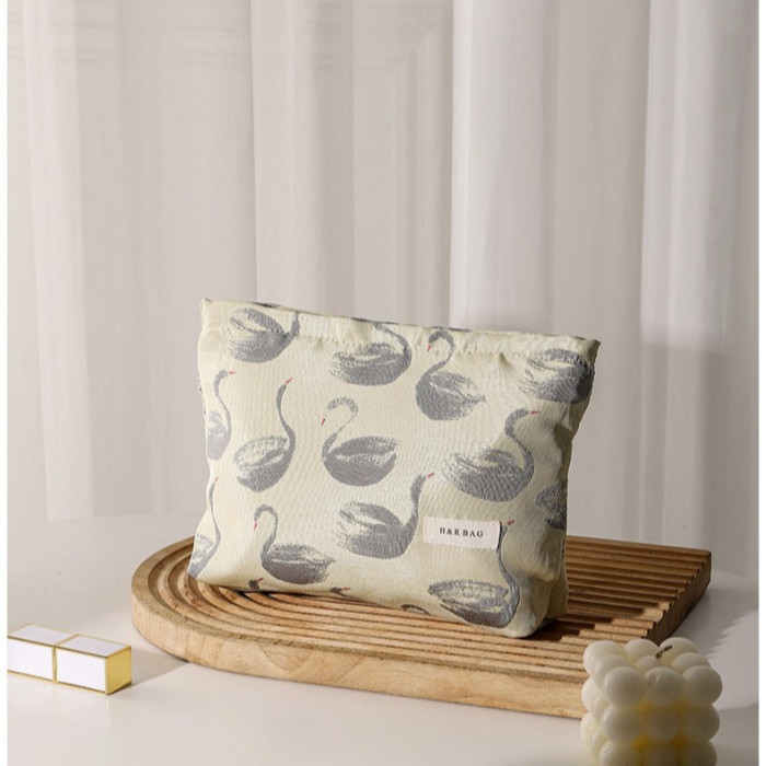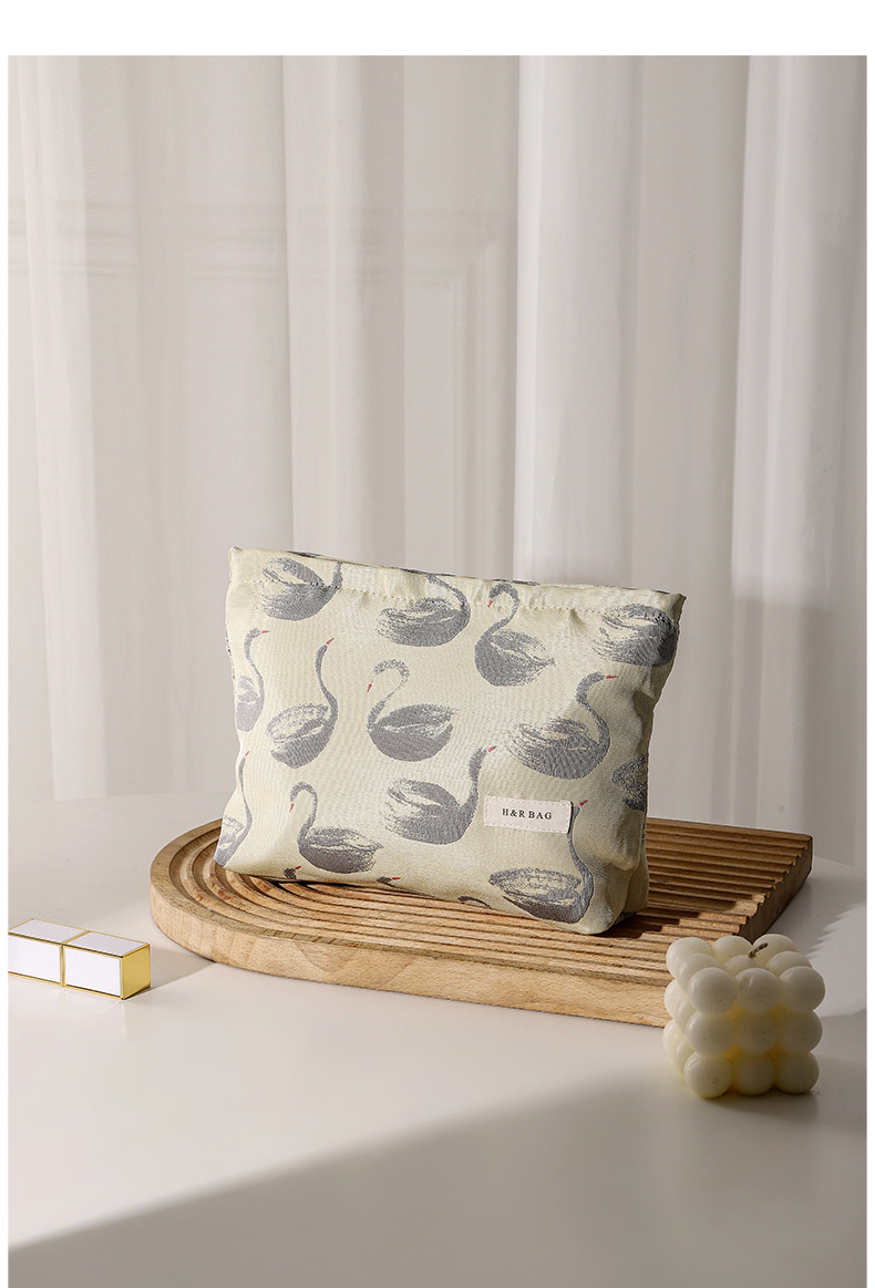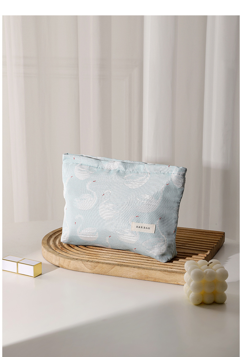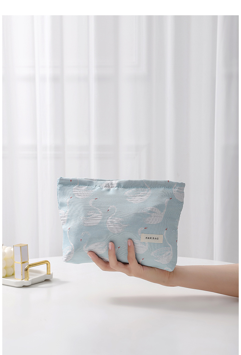 新款小清新天鵞提花撞色化妝袋旅行化妝收納包手拿包內膽包帆布包