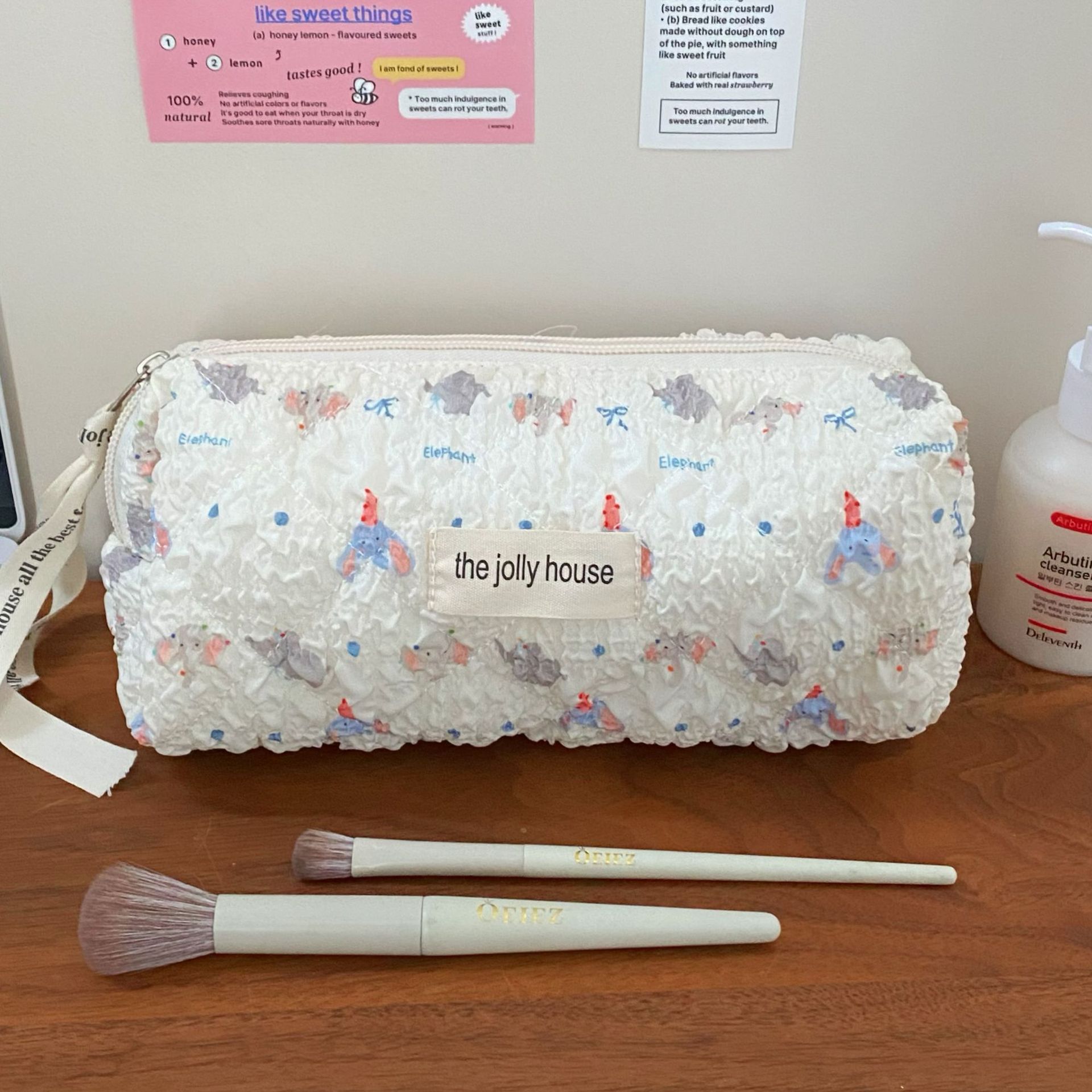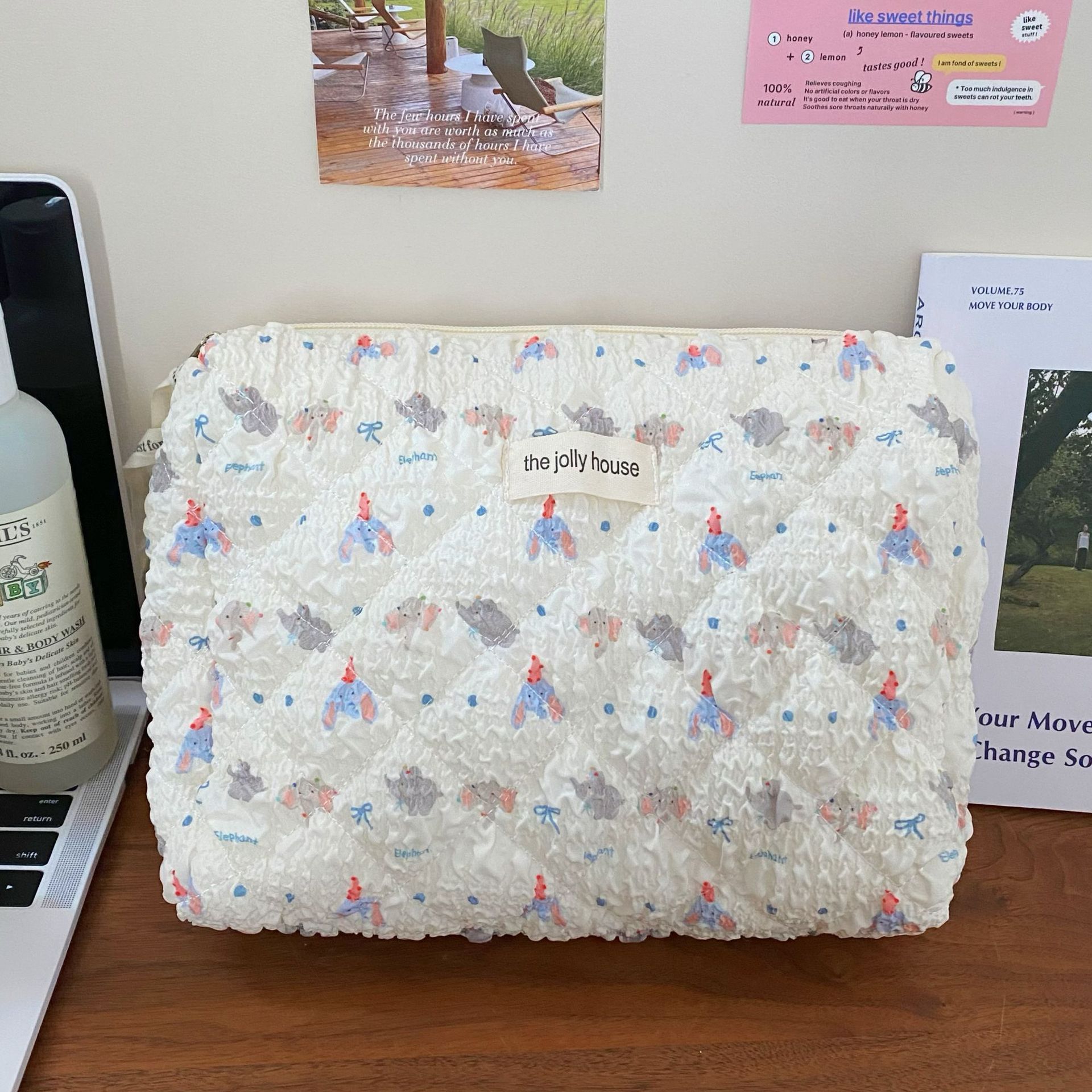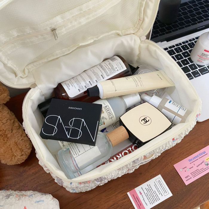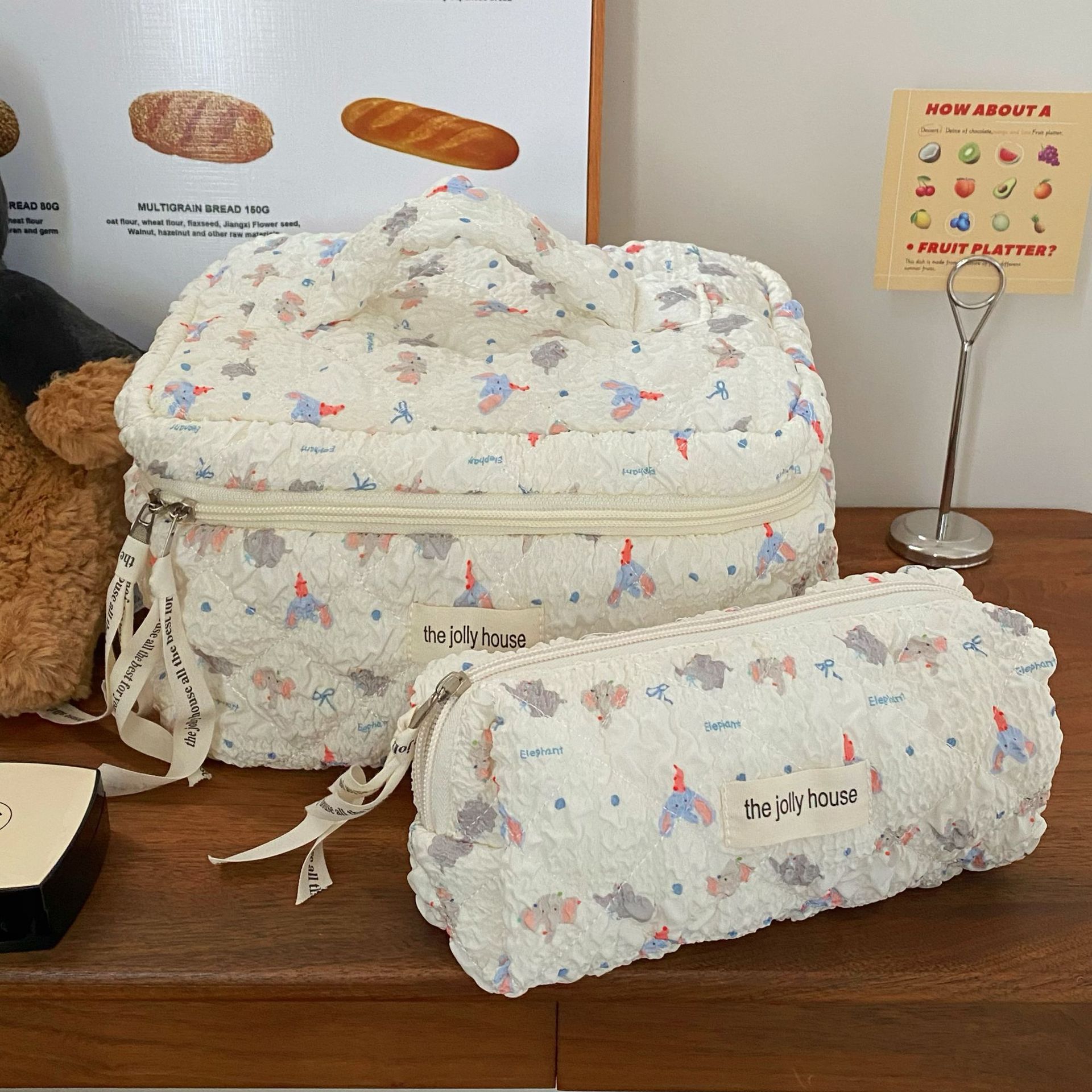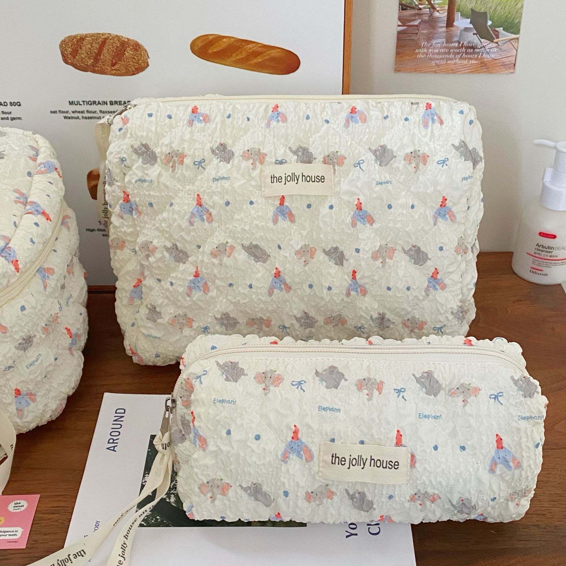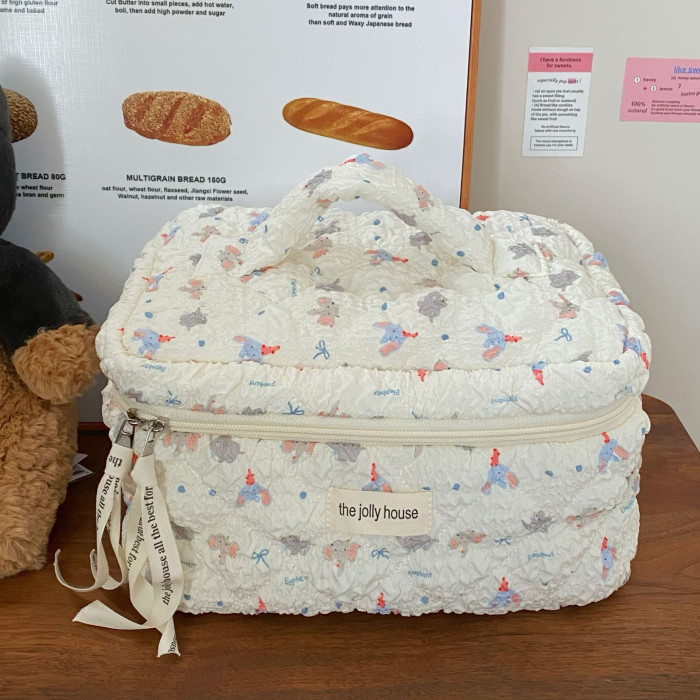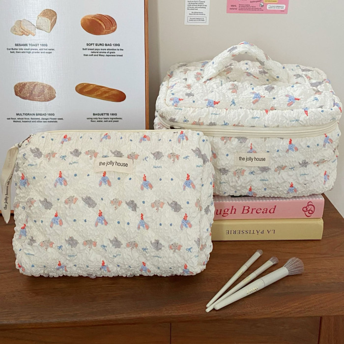 卡通小象化妝包女2024新款泡泡紋理大容量學生化妝品收納包手提包