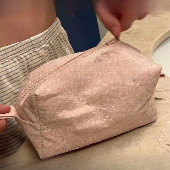2023新款bm女孩大容量粉色碎花收納包洗漱包化妝包v