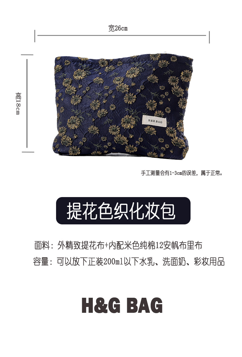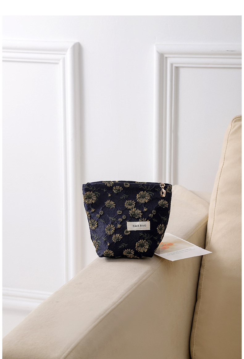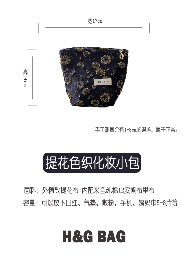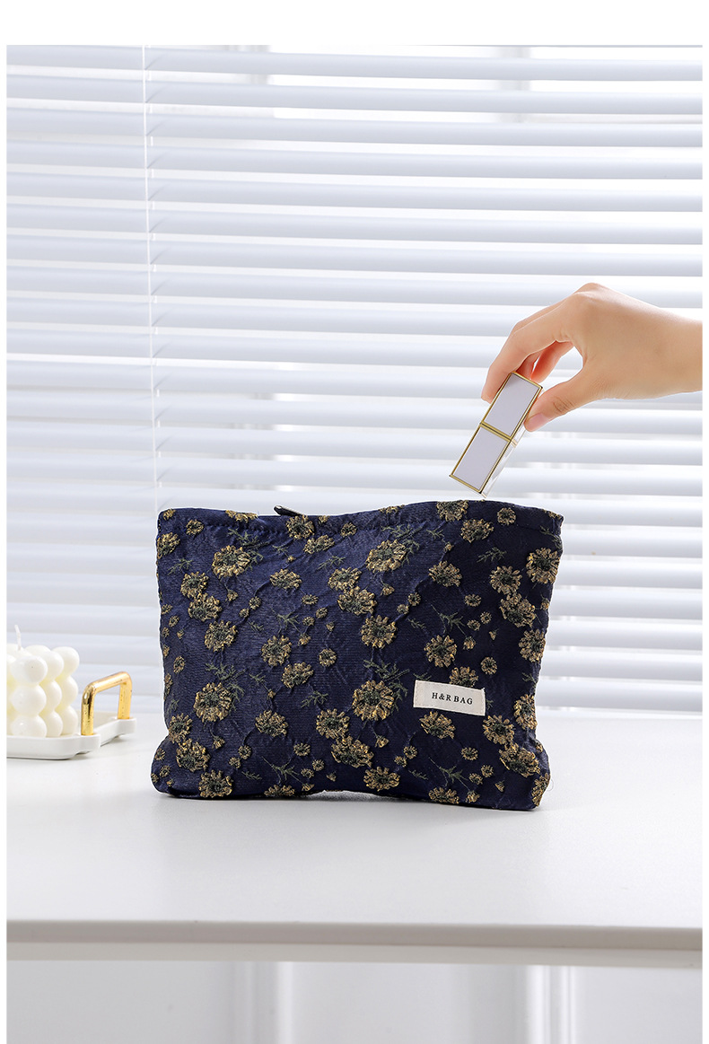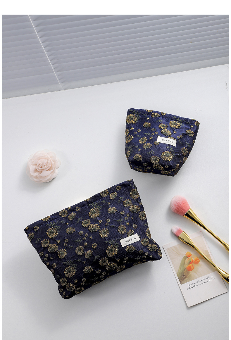 韓版金絲小雛菊色織化妝包旅行可攜式拉鍊帆布收納包口紅手拿包
