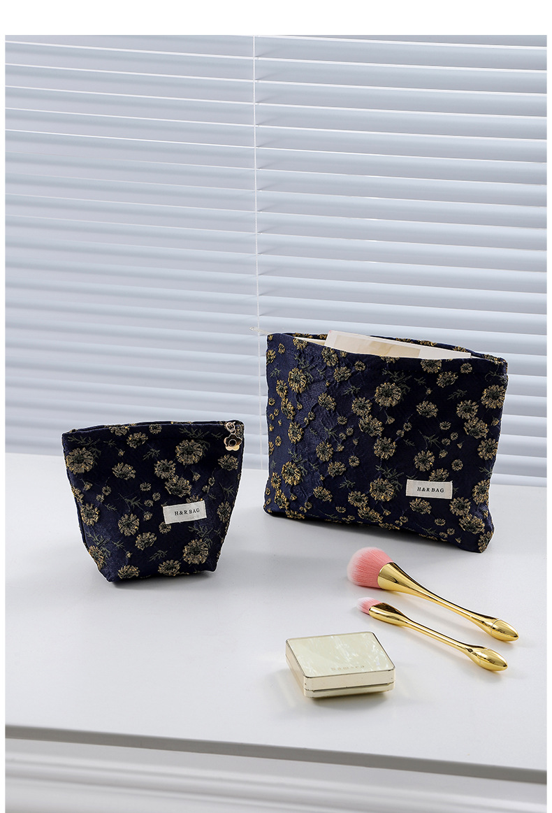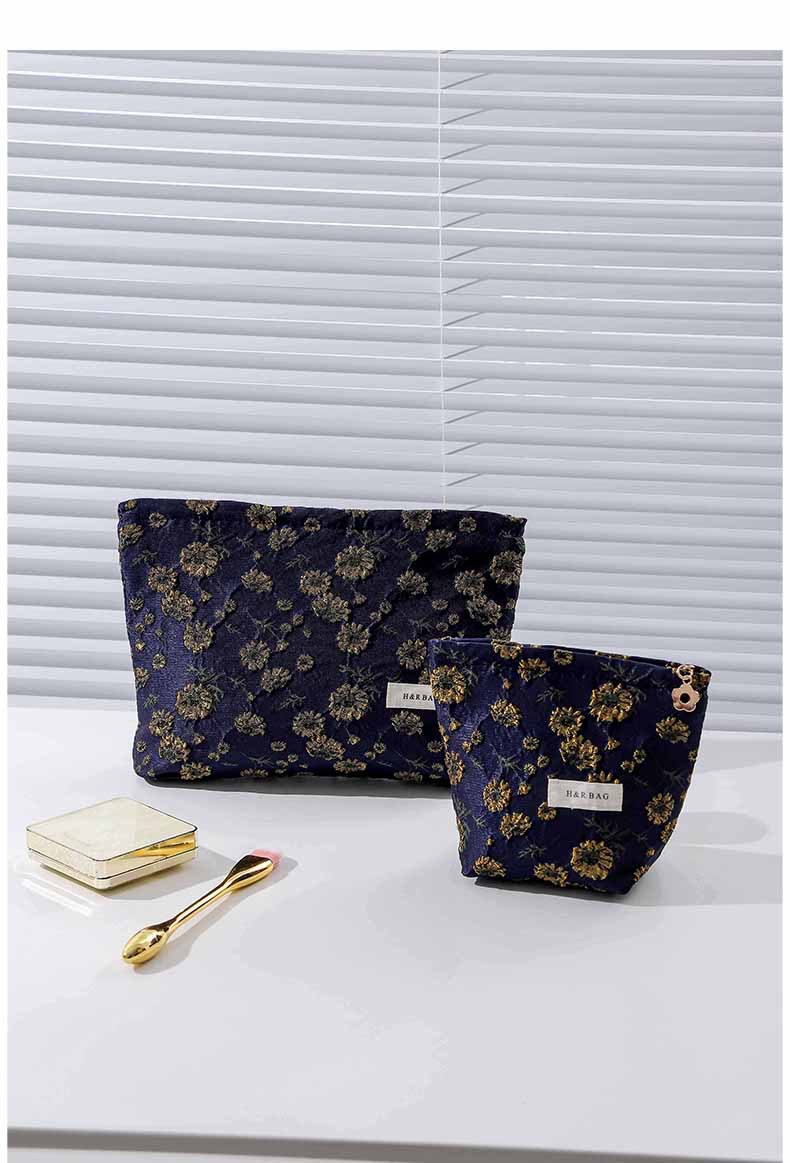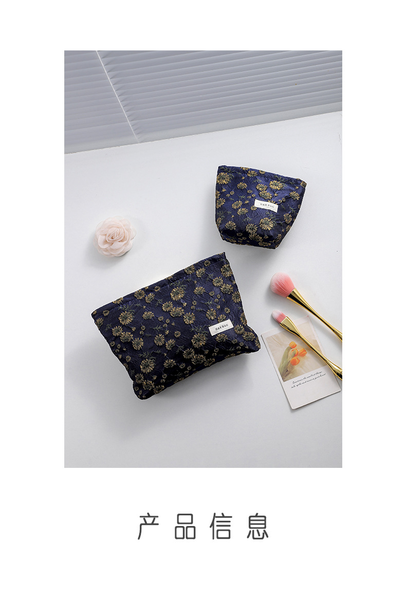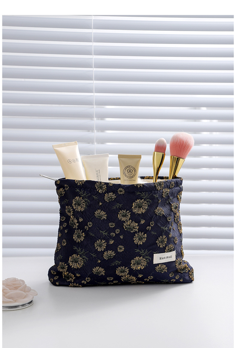 韓版金絲小雛菊色織化妝包旅行可攜式拉鍊帆布收納包口紅手拿包
