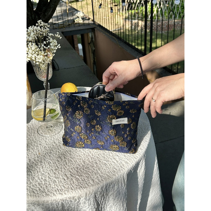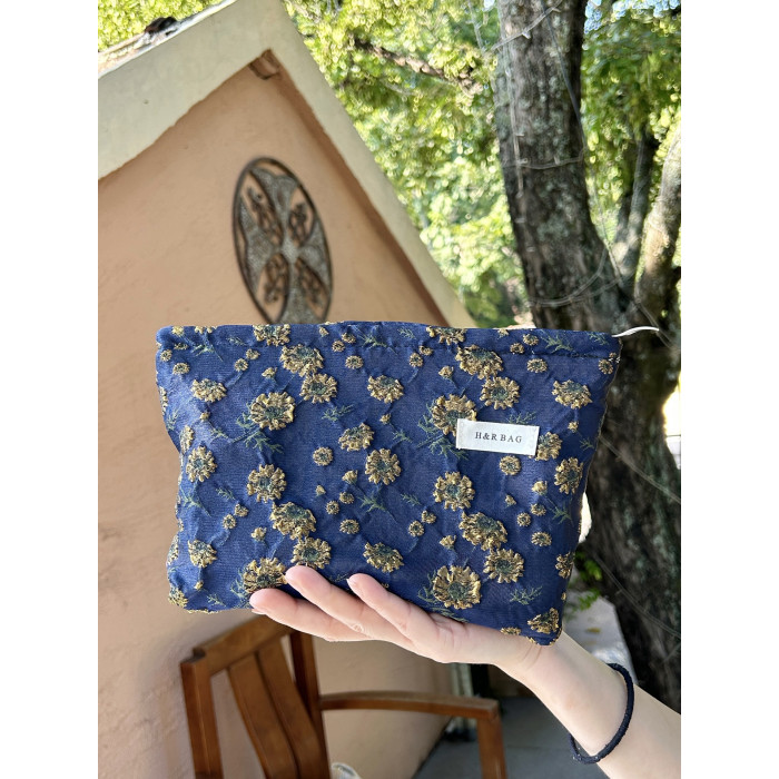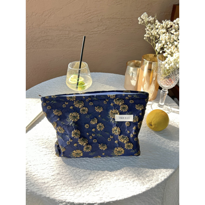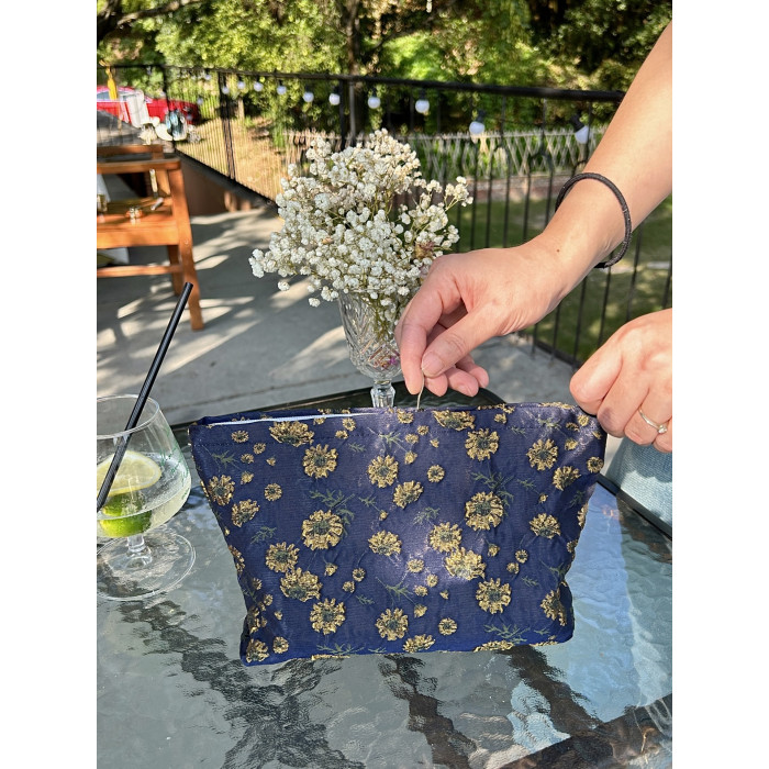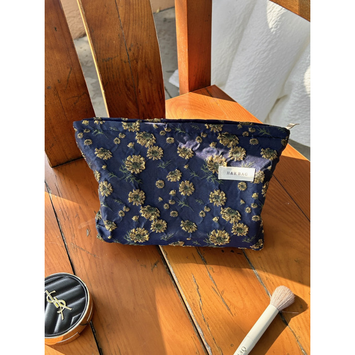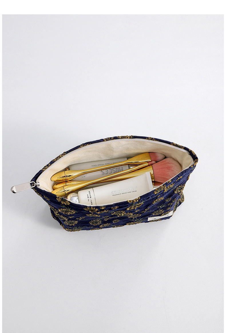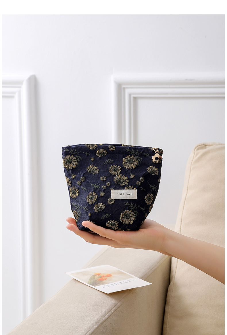 韓版金絲小雛菊色織化妝包旅行可攜式拉鍊帆布收納包口紅手拿包