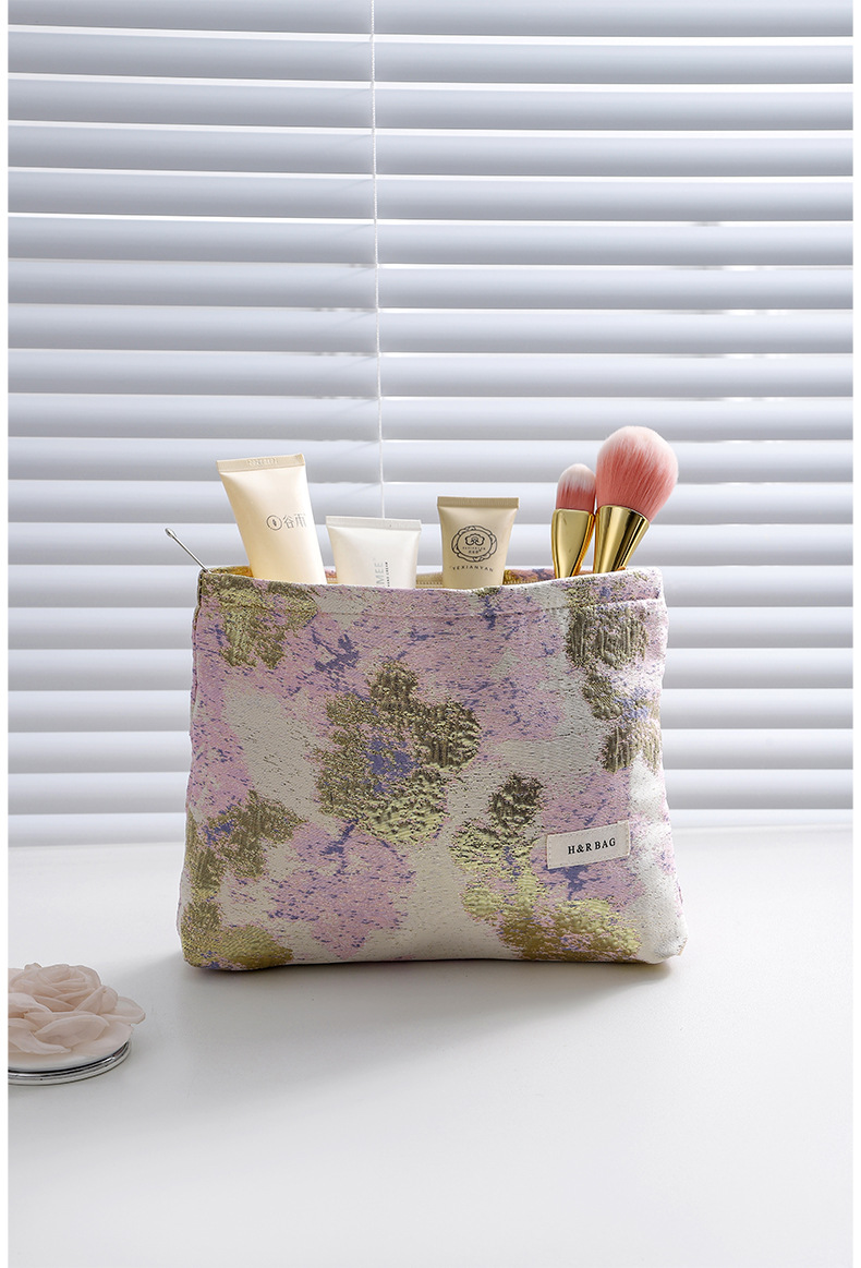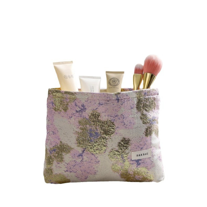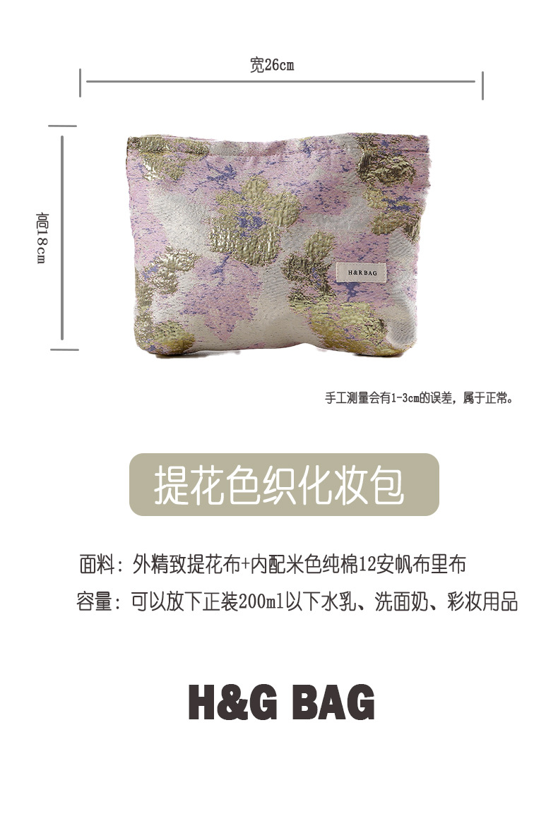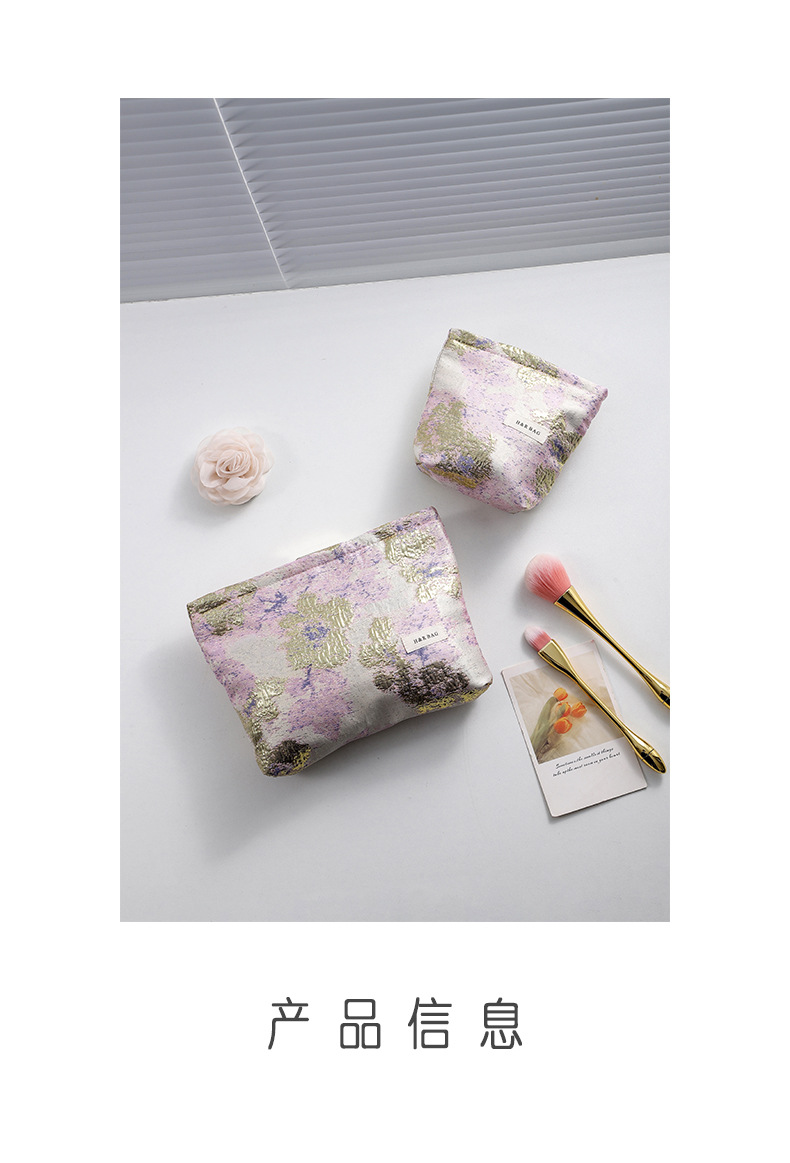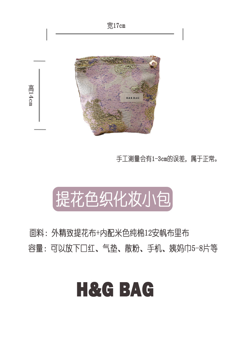 復古金絲提花化妝包大容量高級感可攜式收納包零錢包帆布手拿包