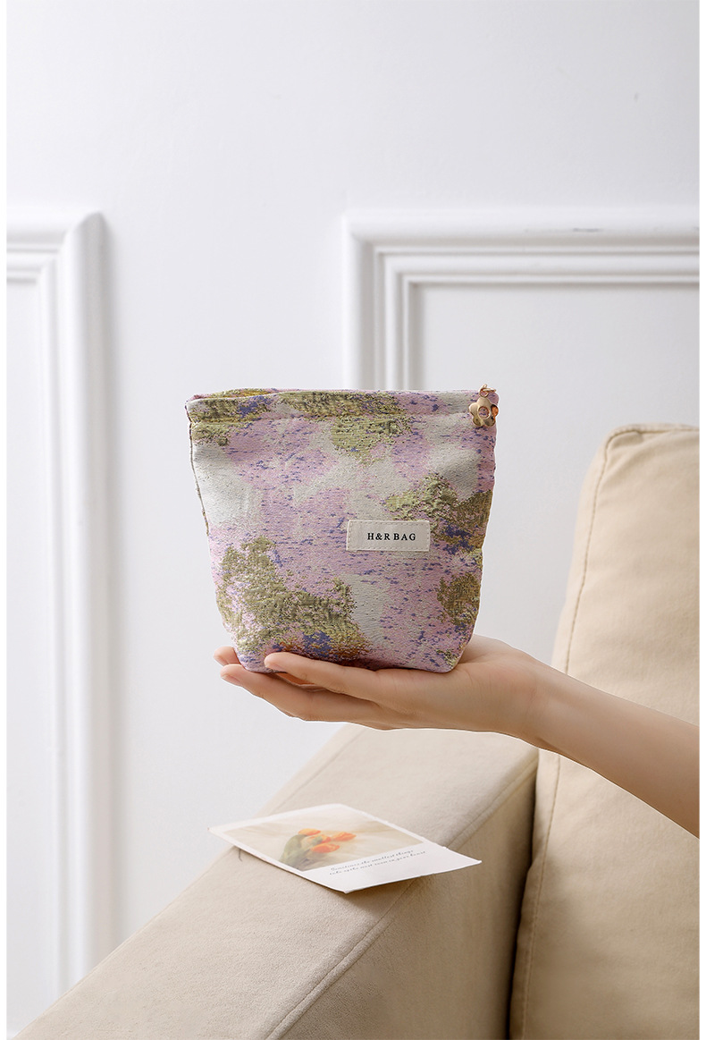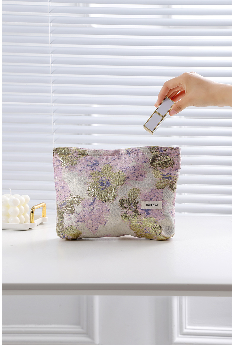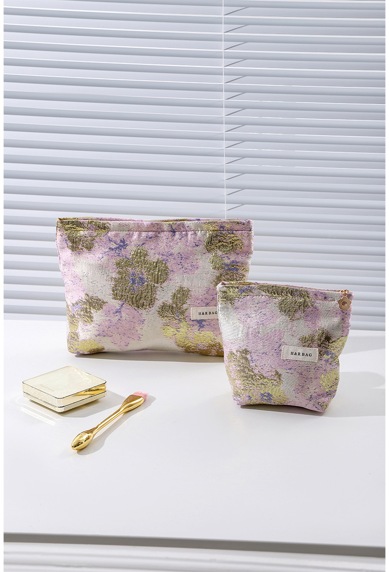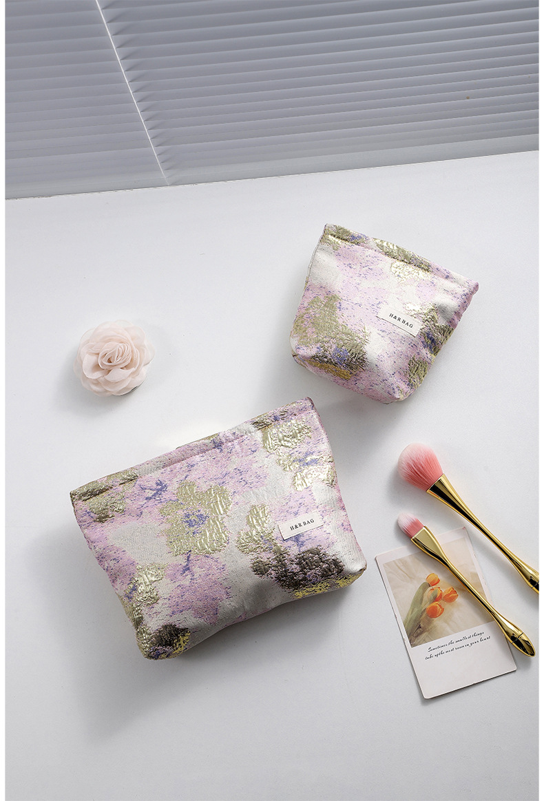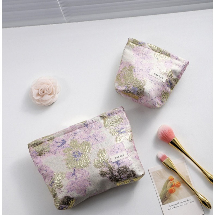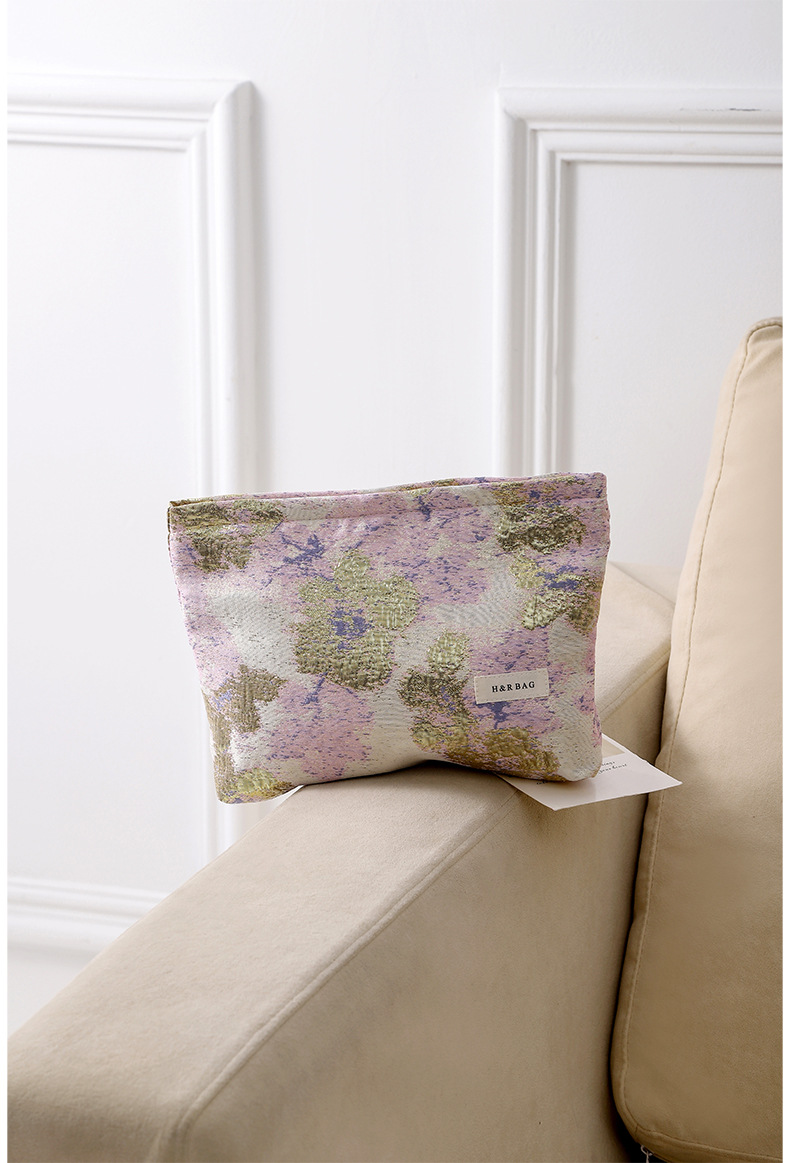 復古金絲提花化妝包大容量高級感可攜式收納包零錢包帆布手拿包