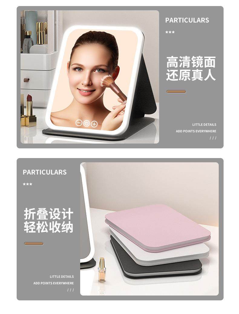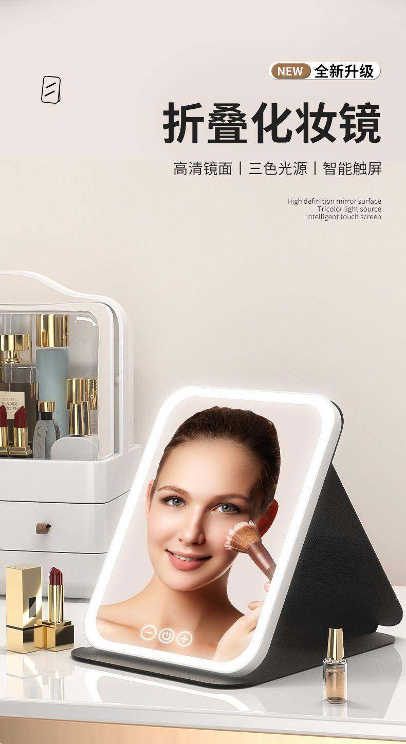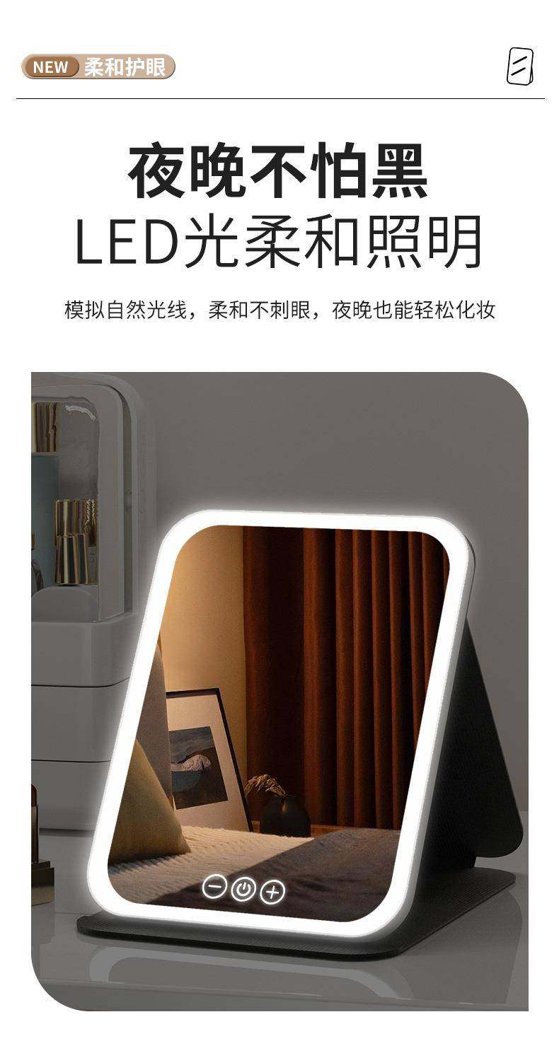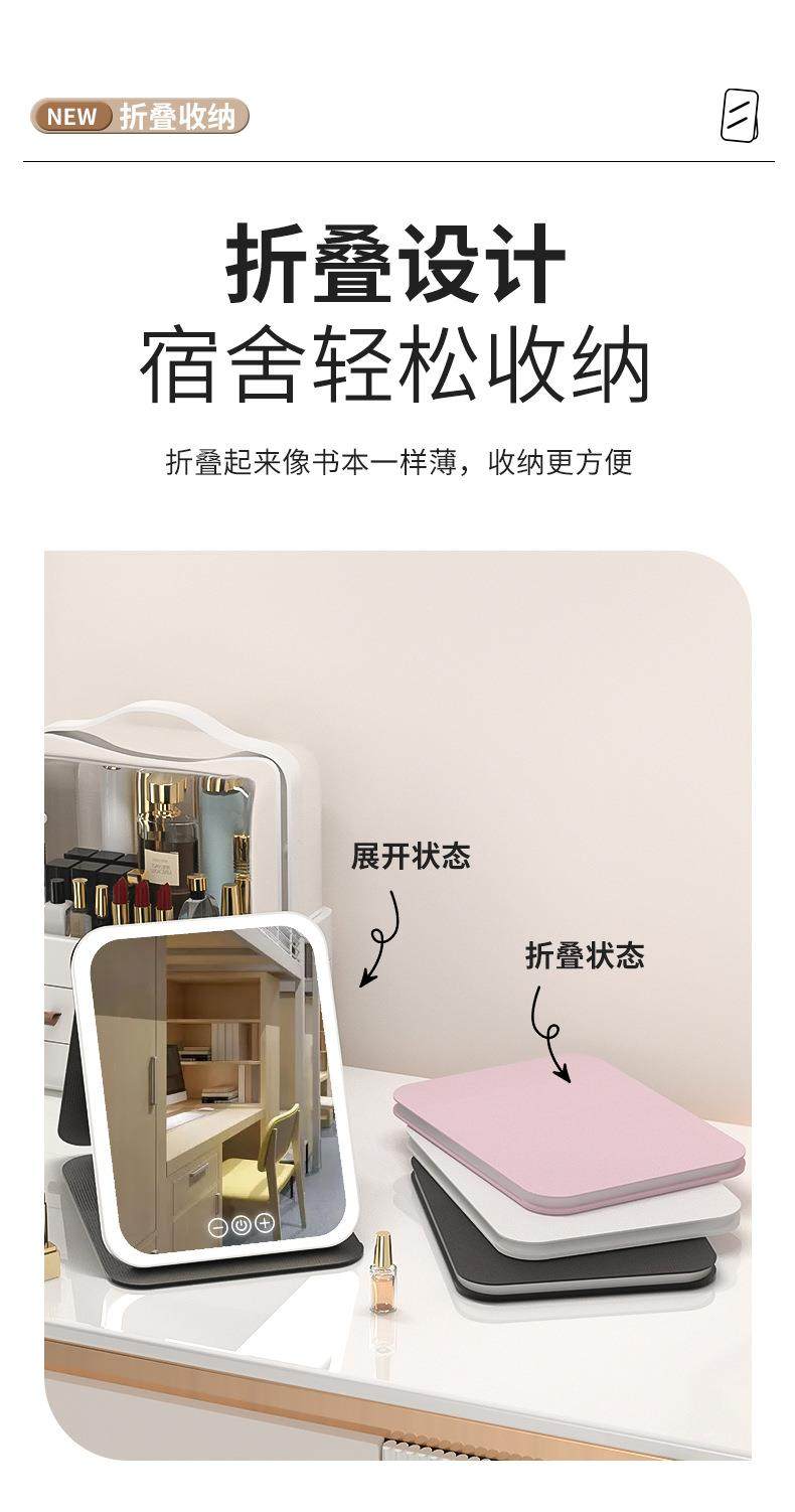 led化妝鏡可攜式鏡子可折曡帶燈梳妝鏡桌上型桌面補光宿捨辦公室鏡子