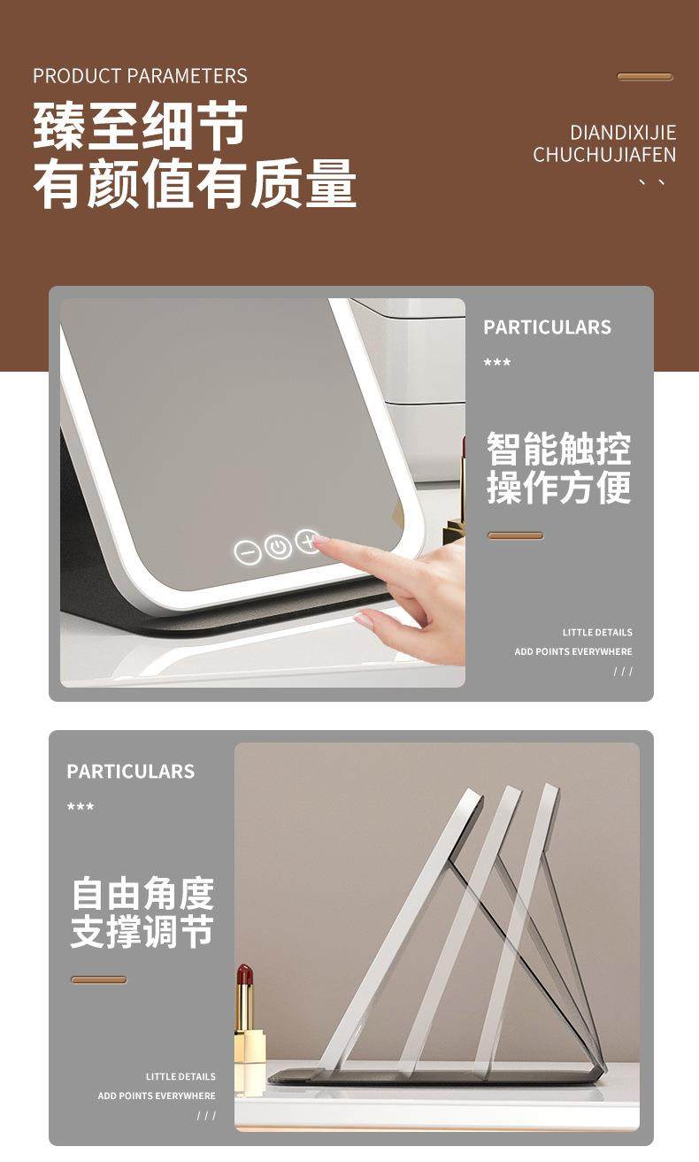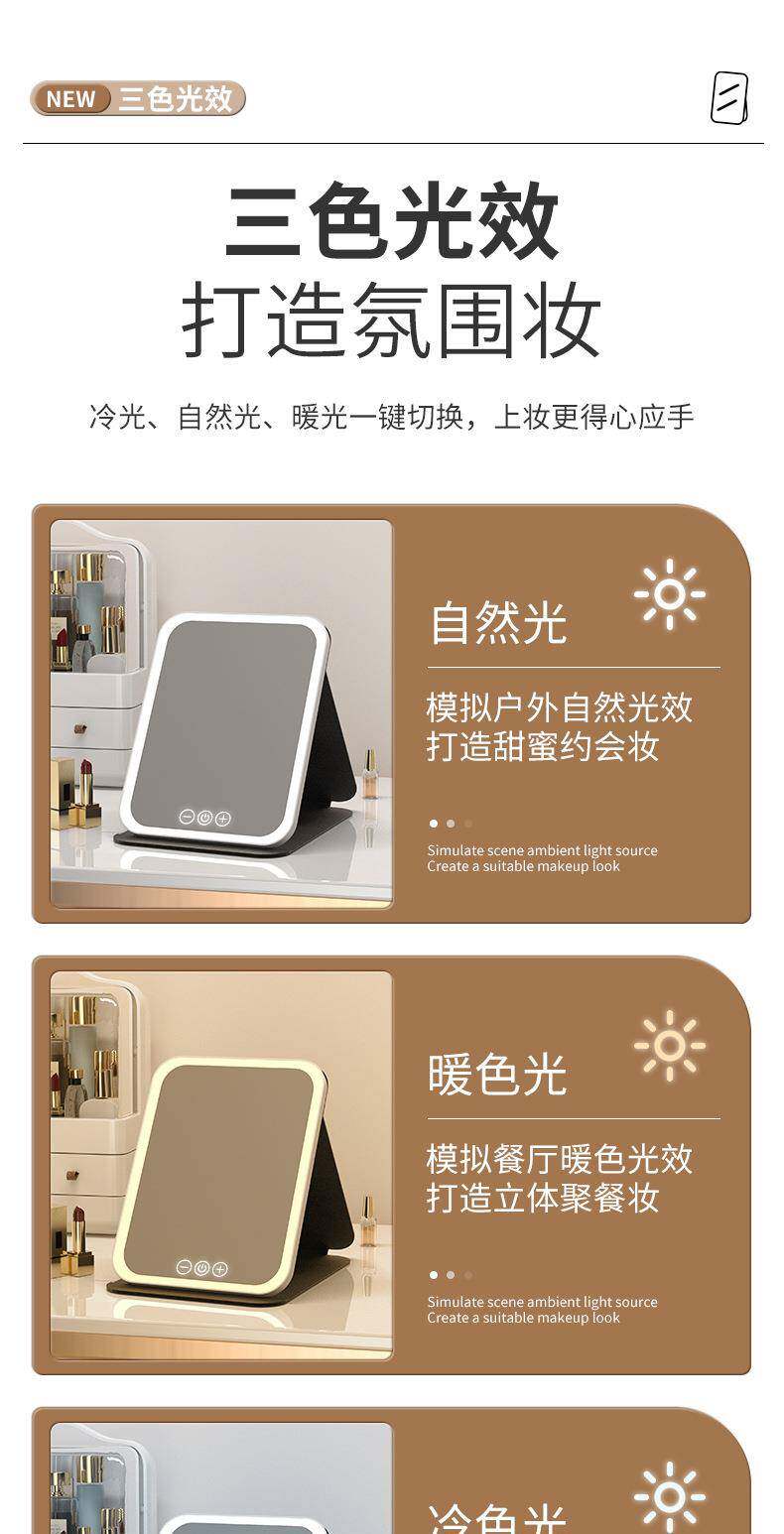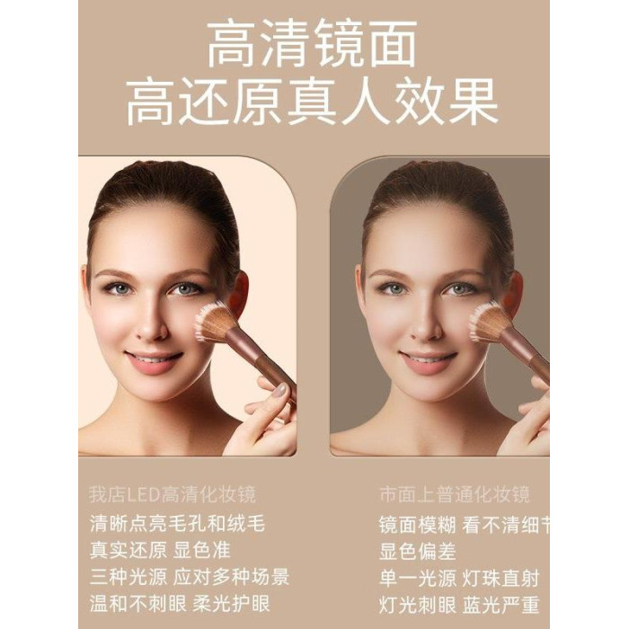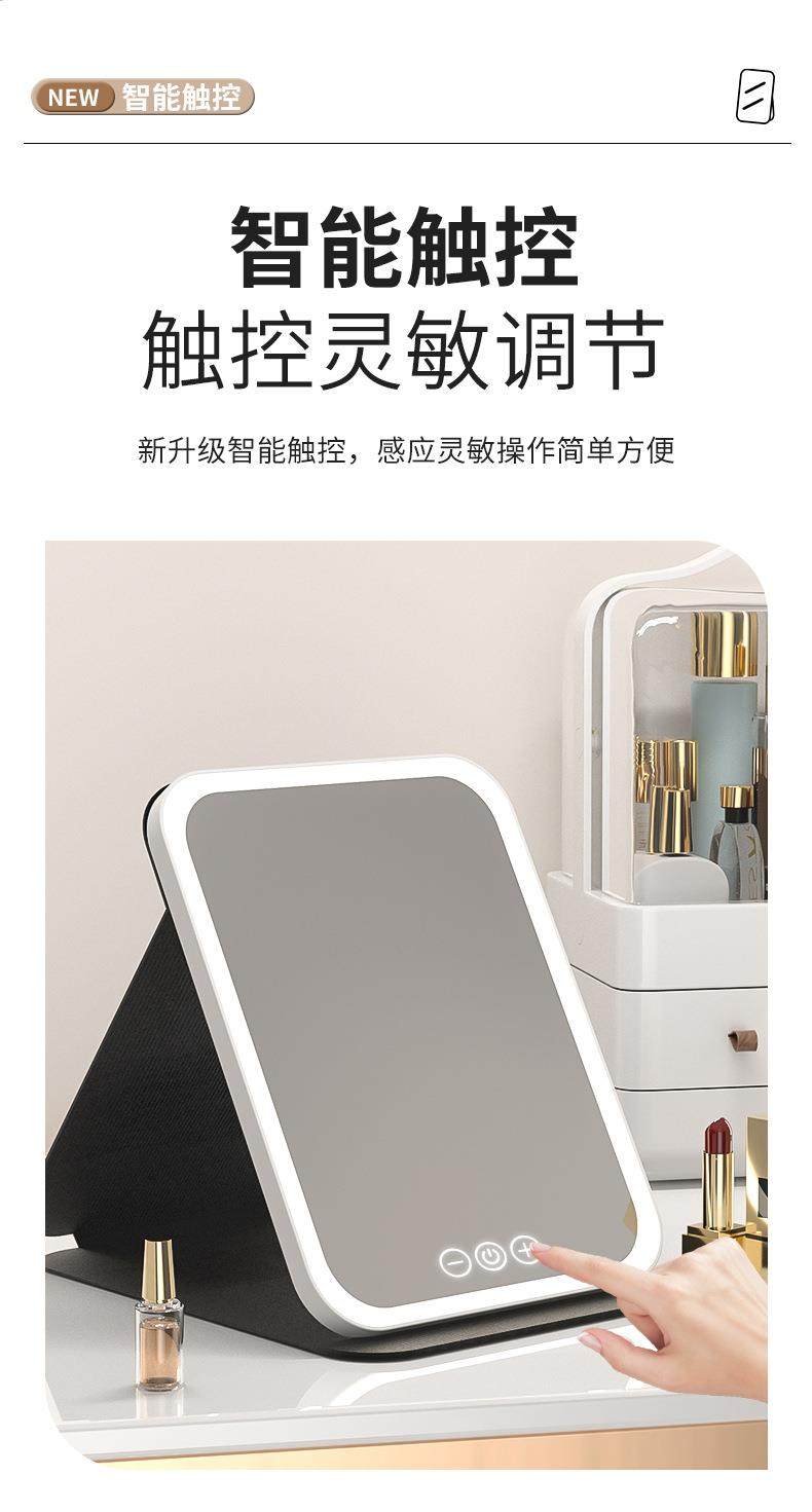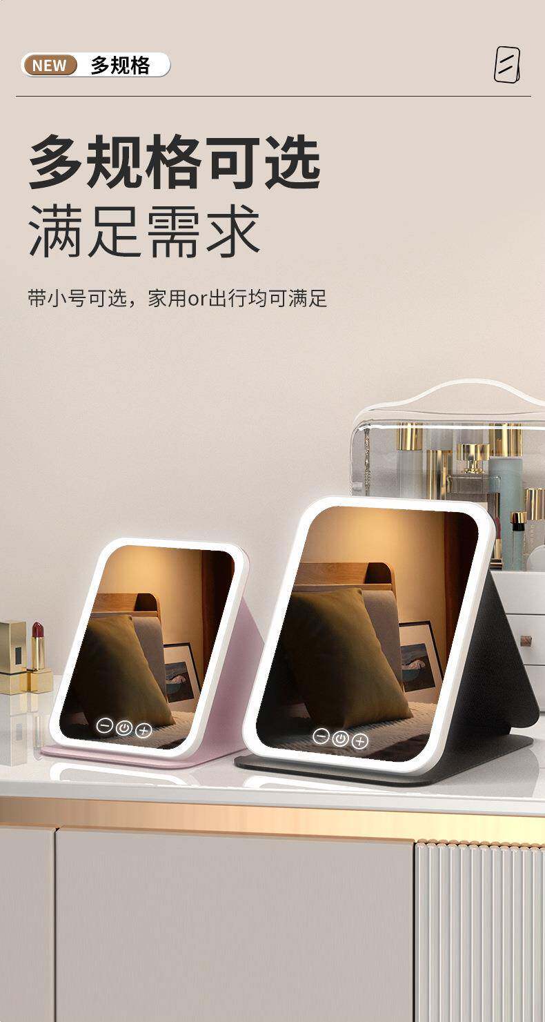 led化妝鏡可攜式鏡子可折曡帶燈梳妝鏡桌上型桌面補光宿捨辦公室鏡子