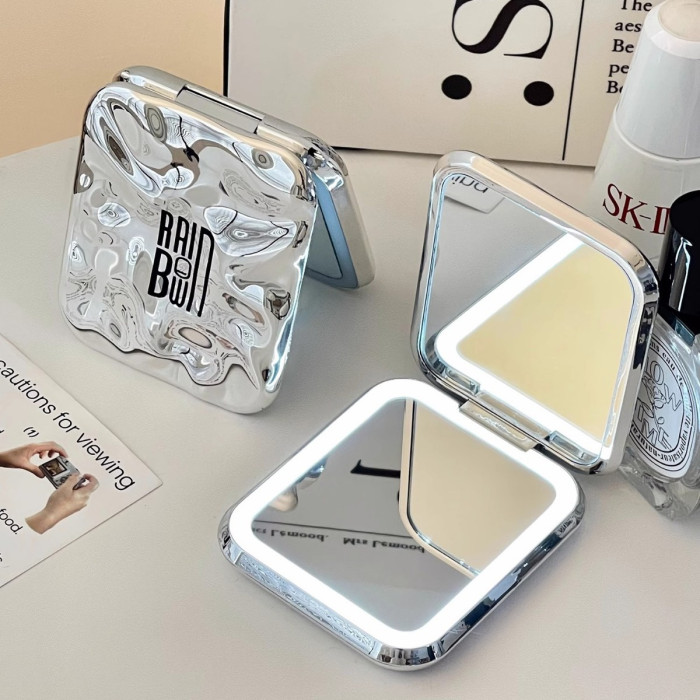 化妝鏡帶燈led隨身鏡外出可攜式小鏡子家用梳妝台桌面迷你折曡鏡