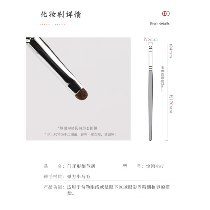 琴製化妝刷驚鴻系列487小號門牙形細節刷眼線刷眼影刷一支裝刷子