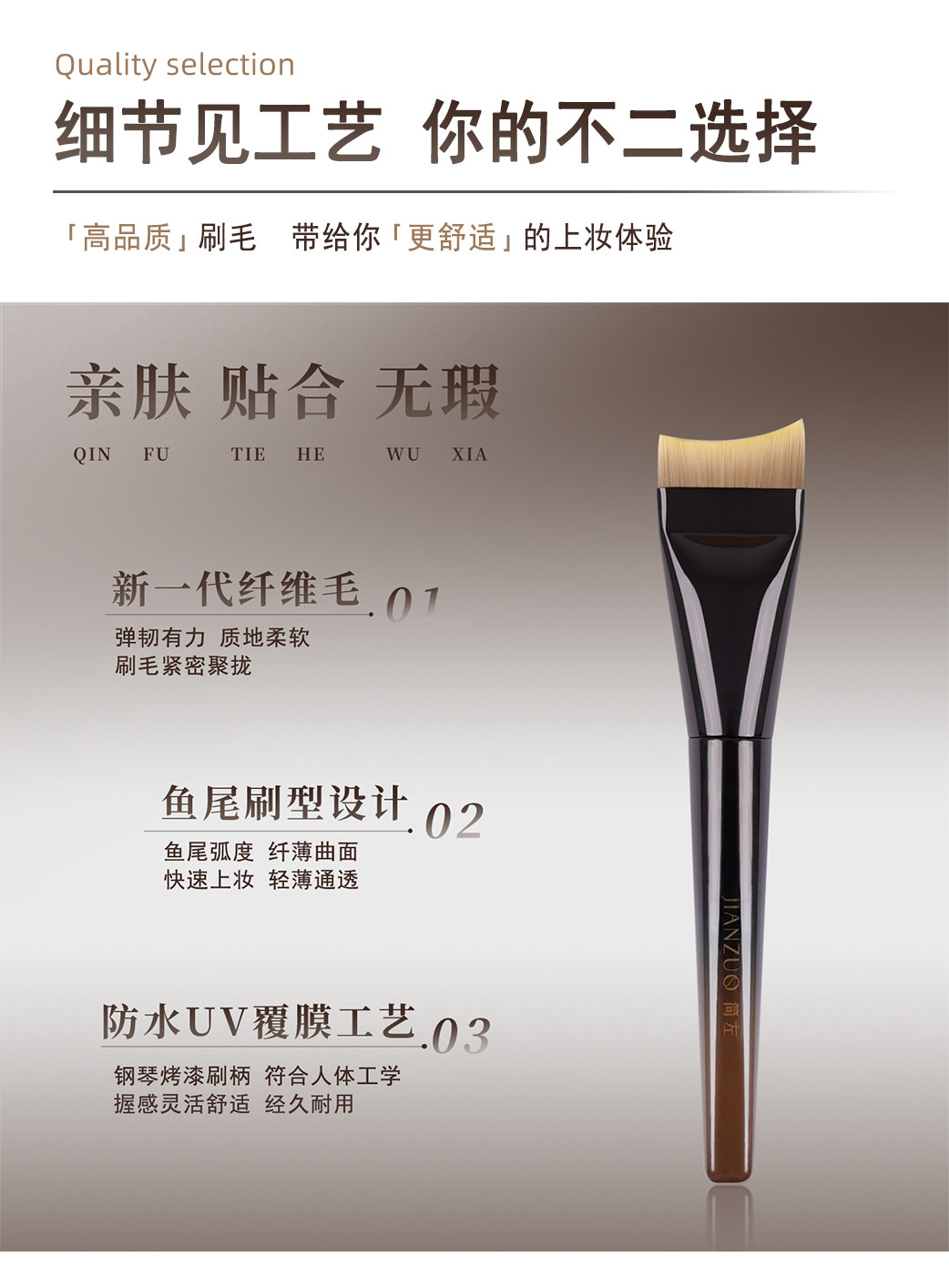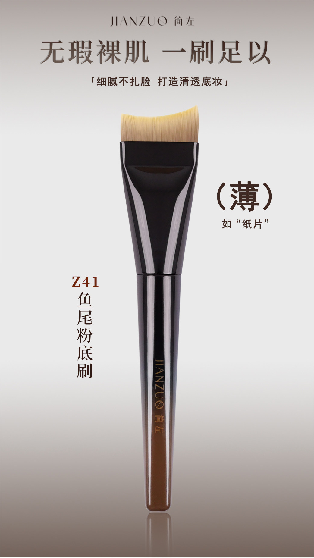 簡左如然Z41粉底刷扁頭一字美人魚尾輕薄無痕不吃粉液面膜化妝刷