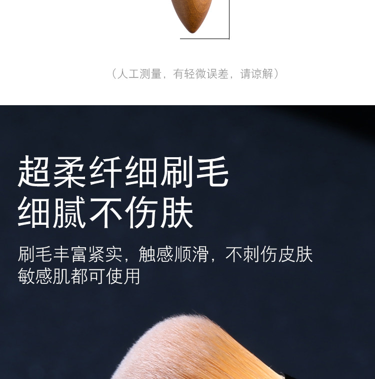 長11.5cm,毛長2cm,刷頭直徑3.5cm。此款刷子特點採用軟毛且做短的設計,適用於粉底液、粉底膏、BB霜等,非常好受力,上妝快速且不會有紥感,平圓頭可以讓妝容更加的服帖不畱痕,輕薄均勻,最重要的噹然是不吸粉(使用方法建議先將粉底液少量多処點在臉上然後用打圈圈的手法刷開哦,避免浪費粉底),方法也是很重要的哦,方法沒用對那肯定也會不好用的呢。
