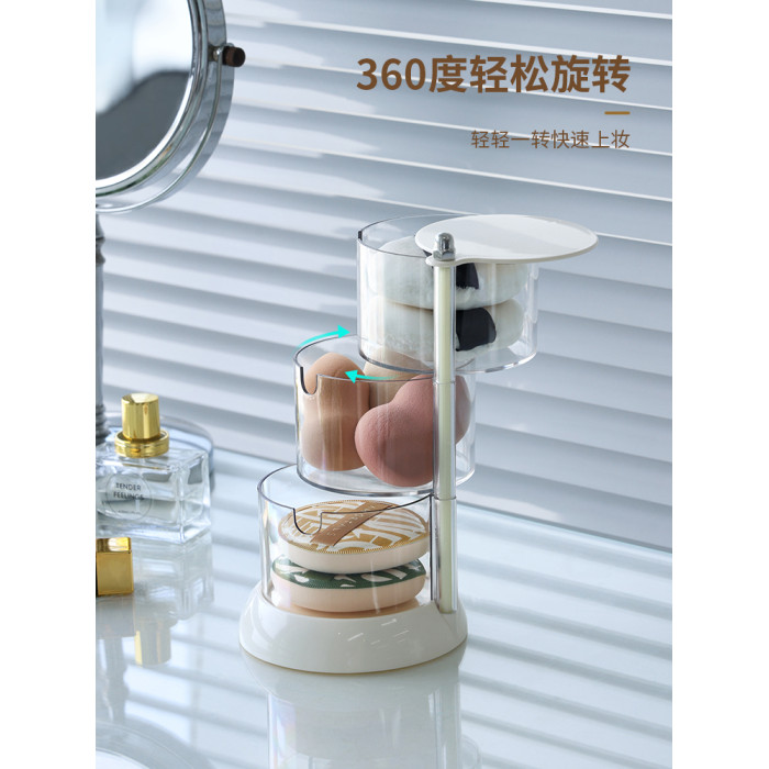 粉撲收納盒旋轉防塵透氣多層桌面氣墊海綿彩蛋托化妝工具置物架子