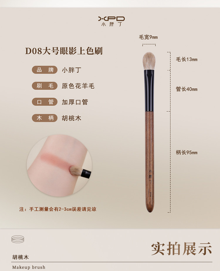 小胖丁D08原色花羊毛眼影刷大號鋪色打底暈染扁圓頭動物毛化妝刷