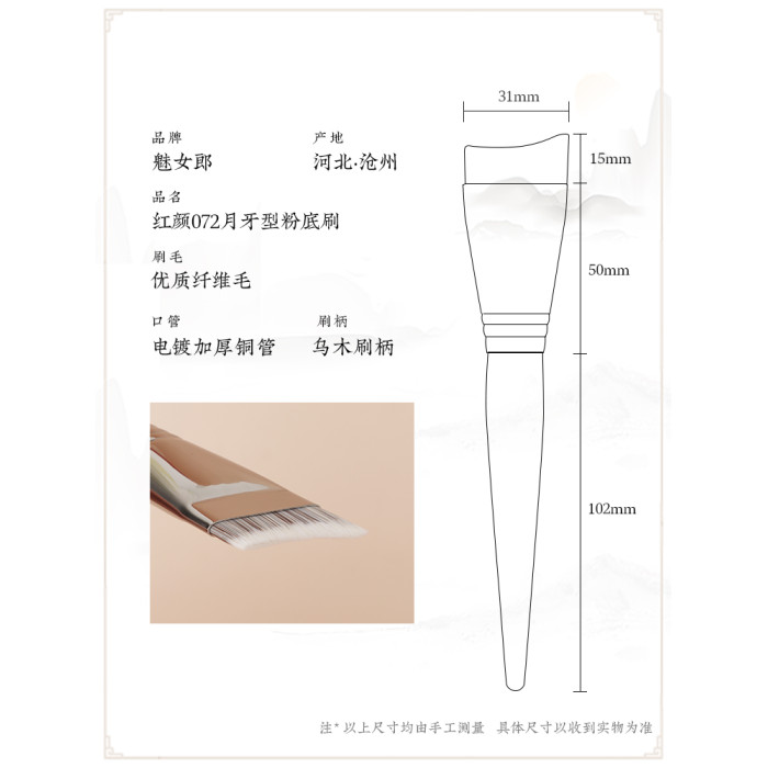 魅女郎紅顔072月牙型粉底刷輕薄無痕扁弧形面膜粉底液專用化妝刷