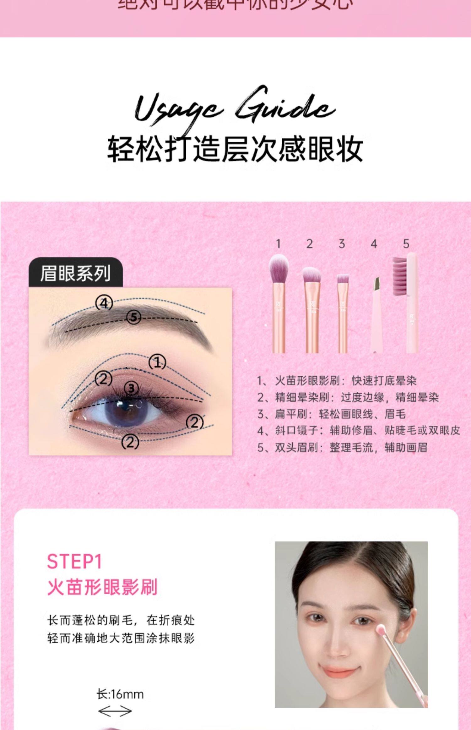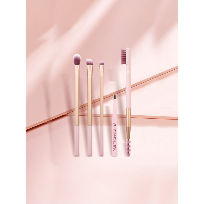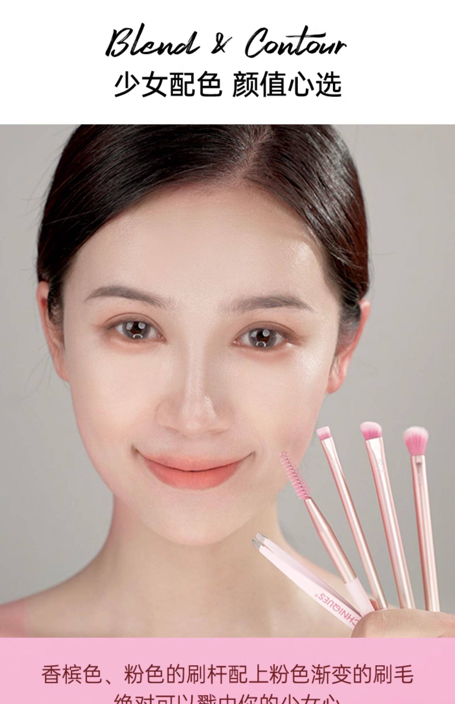 【官方旗艦店】RT化妝刷香檳粉眼眉套刷5支裝假睫毛鑷子眼影刷