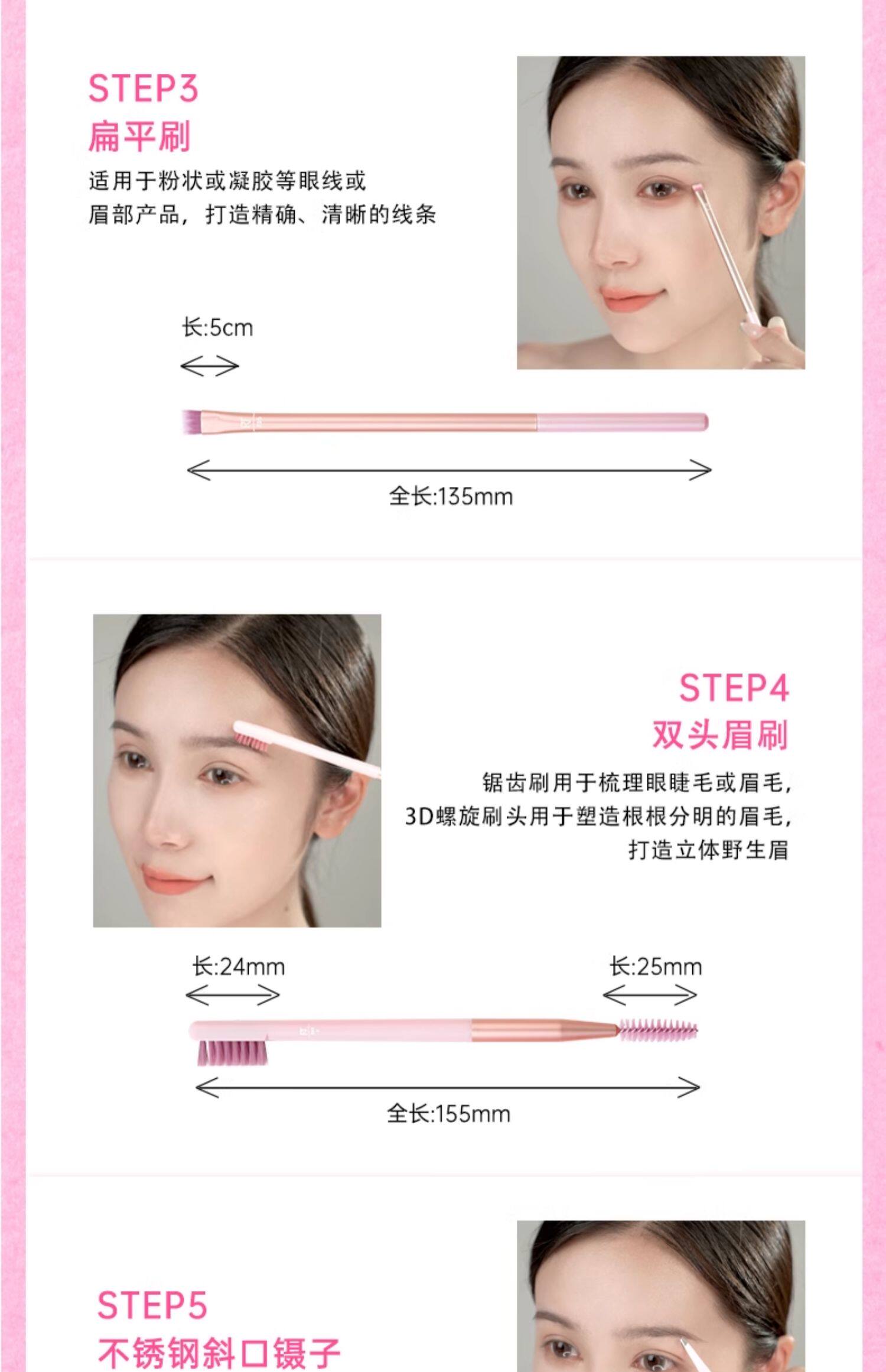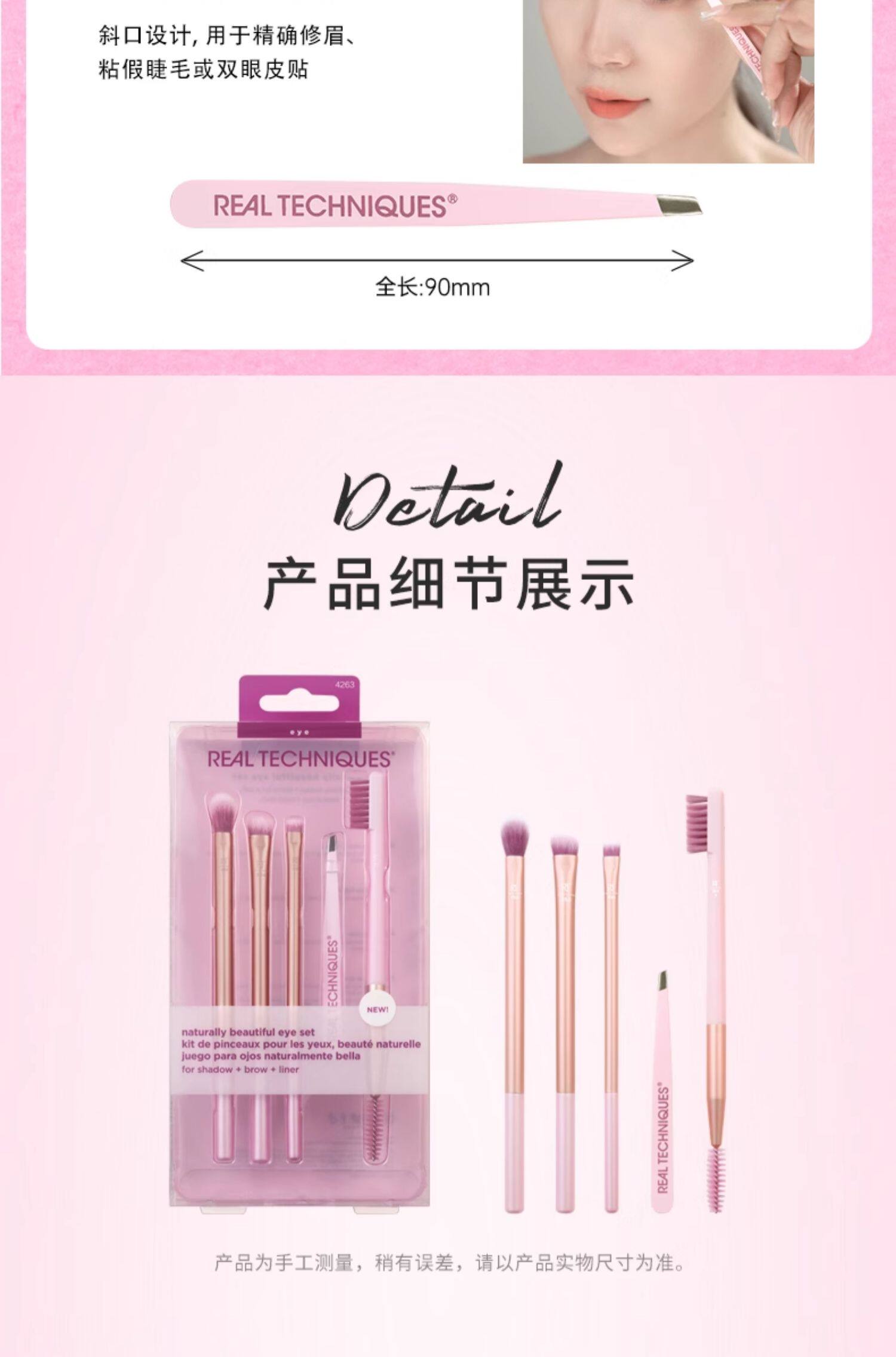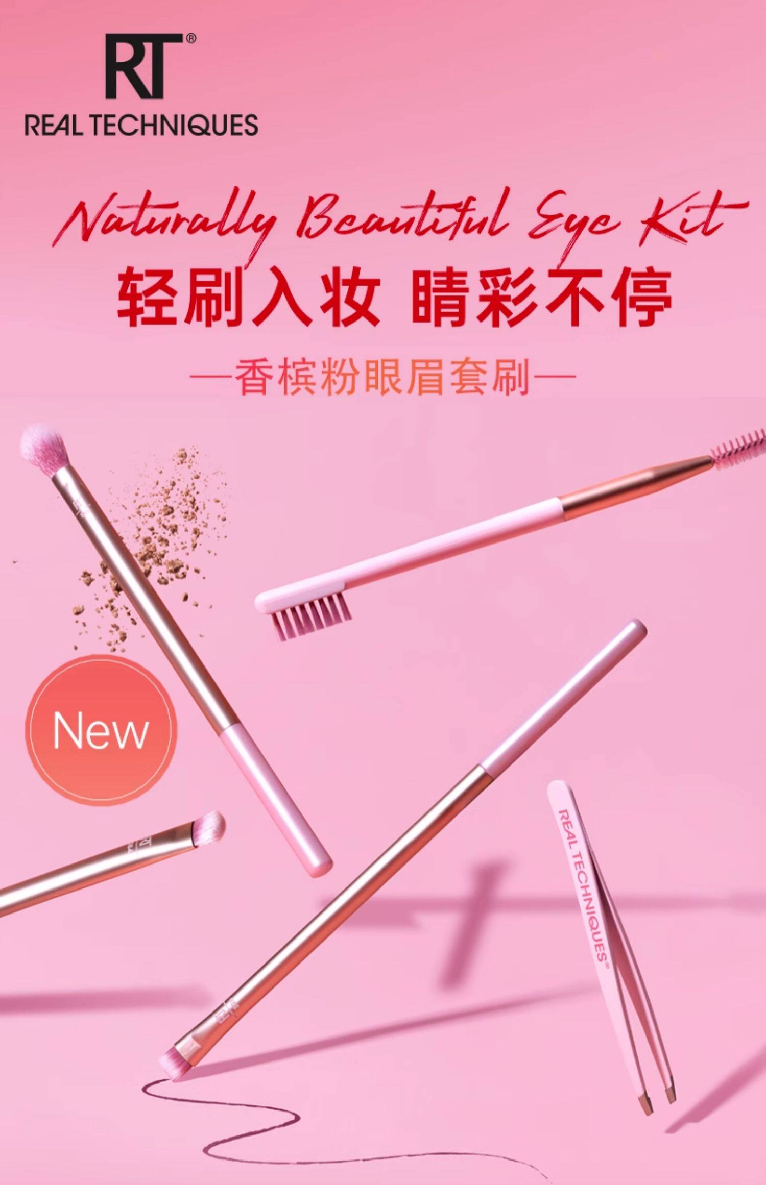 【官方旗艦店】RT化妝刷香檳粉眼眉套刷5支裝假睫毛鑷子眼影刷