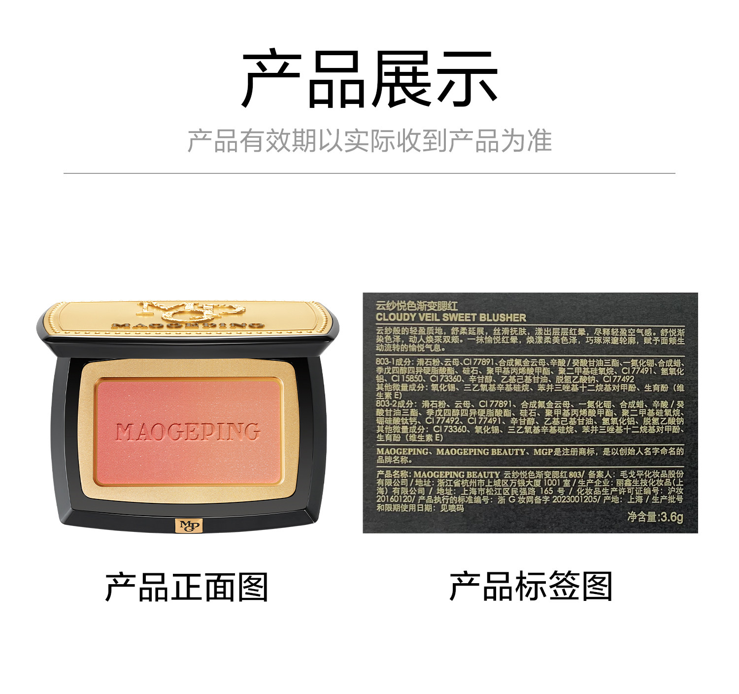 | 産品名稱 | MAOGEPING BEAUTY雲紗悅色漸變腮紅803 |