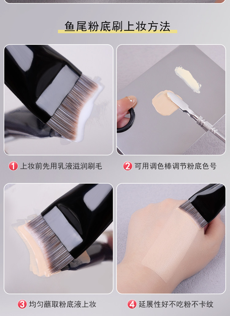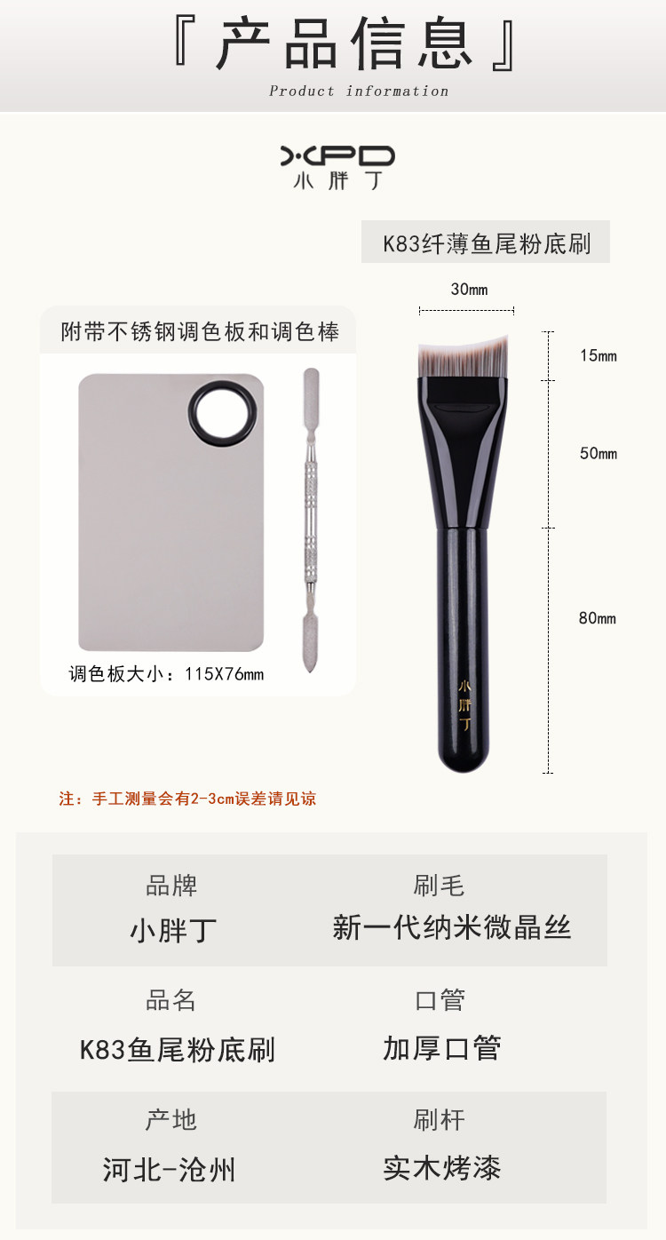 小胖丁K83粉底刷刀鋒一字型魚尾扁頭輕薄無痕不吃粉液化妝面膜刷