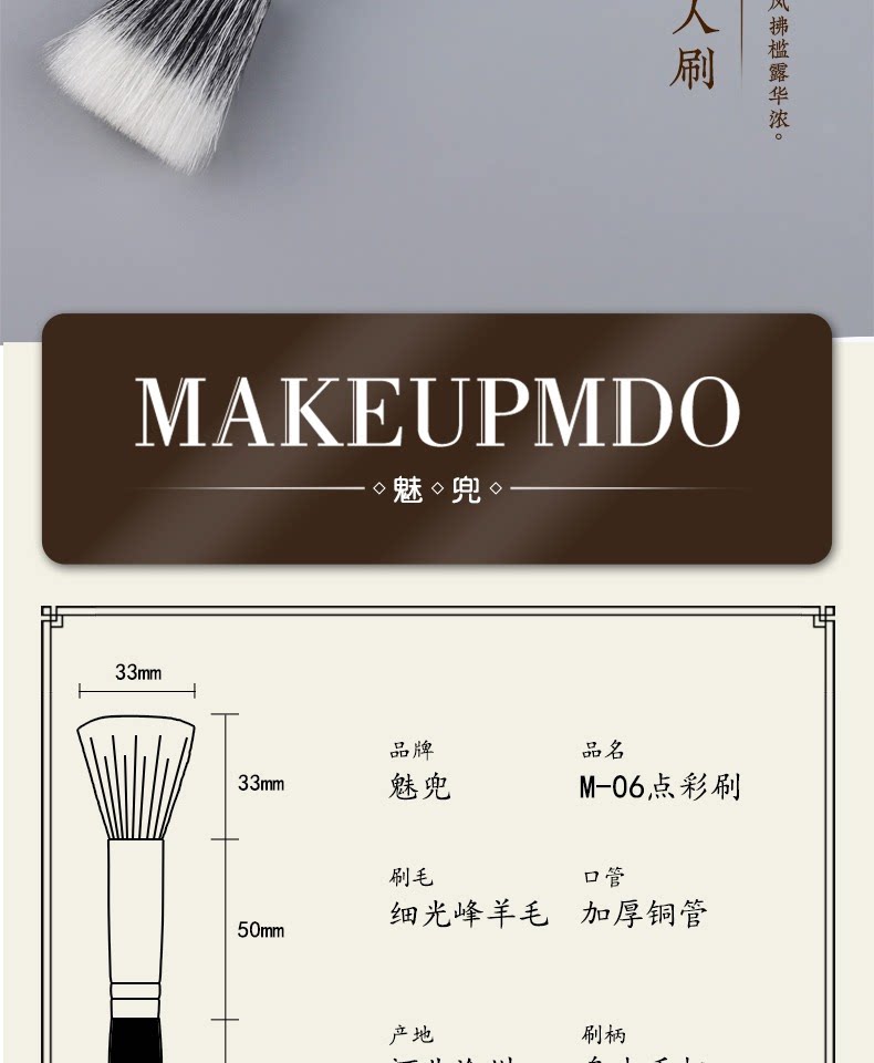 魅兜m06大小號點彩刷腮紅刷羊毛女曬紅高光刷動物毛一支裝化妝刷