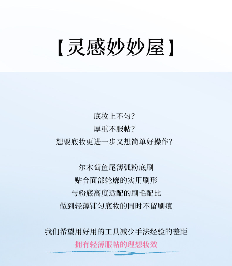 爾木萄粉底刷魚尾薄弧一字扁平頭刀鋒化妝刷不吃粉底液專用無痕