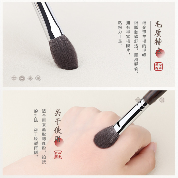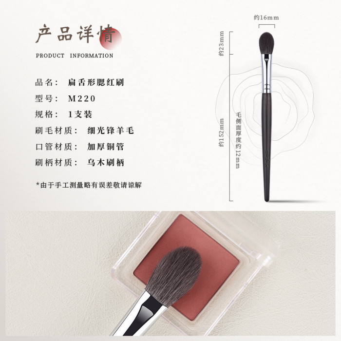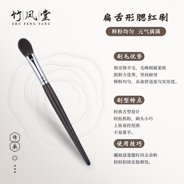 竹鳳堂化妝刷M220扁舌形小號腮紅刷鼻影高光刷一支裝動物毛竹風堂