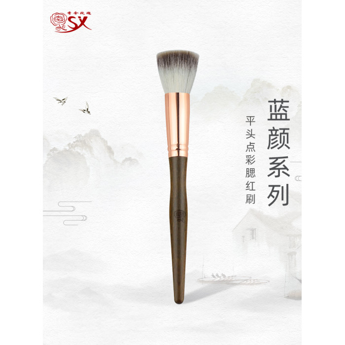 香捨玫瑰瀾顔中號點彩刷腮紅刷平頭藍狐毛化妝刷超柔軟手工化妝刷