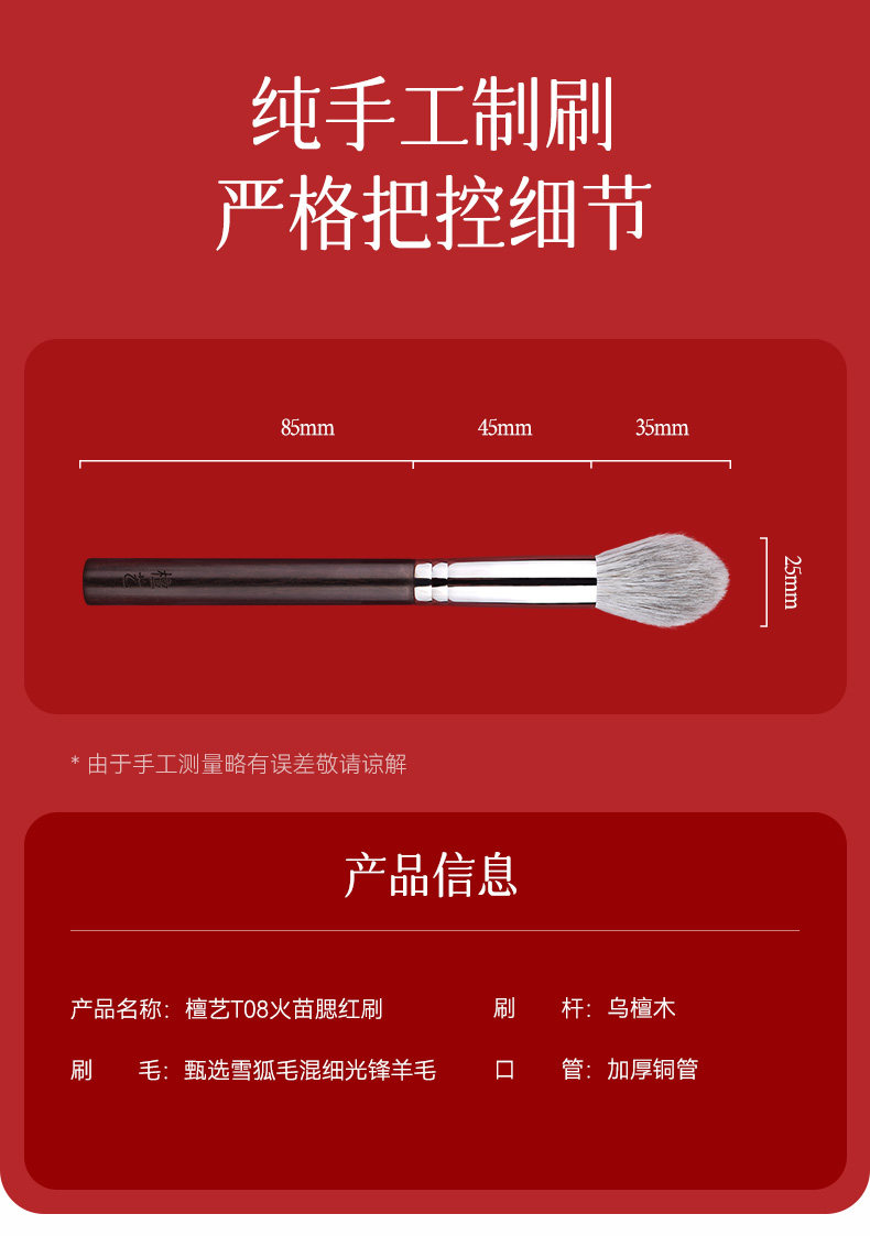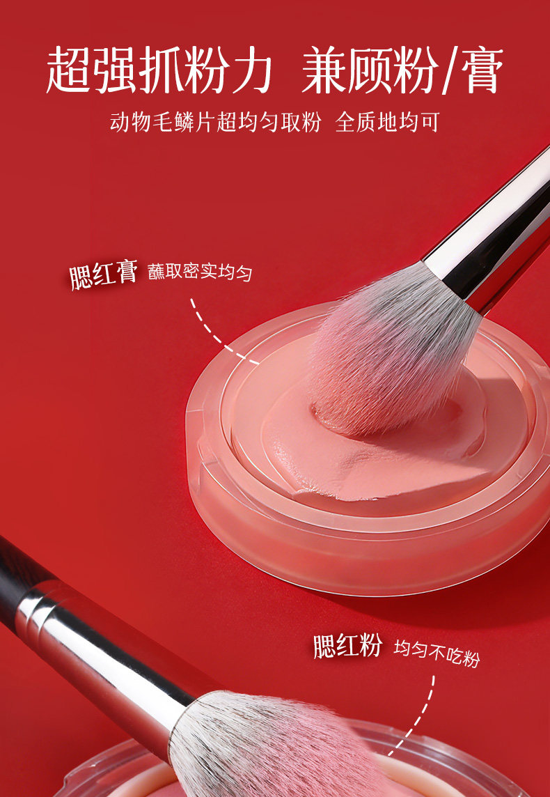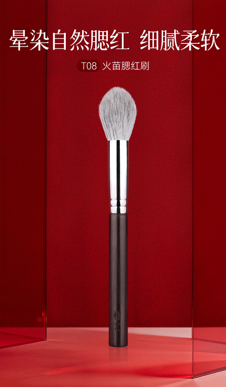 檀藝化妝刷T08火苗腮紅刷修容刷柔軟蓬松一支裝刷子可攜式多功能