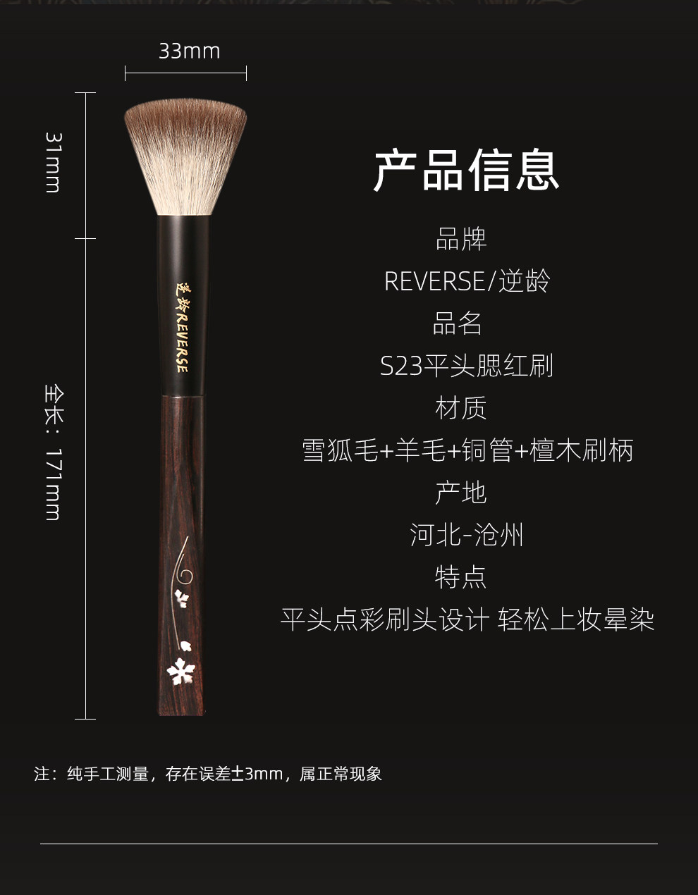 逆齡檀木T23S23平頭點彩刷腮紅刷柔軟初學者化妝刷手工超軟美妝刷